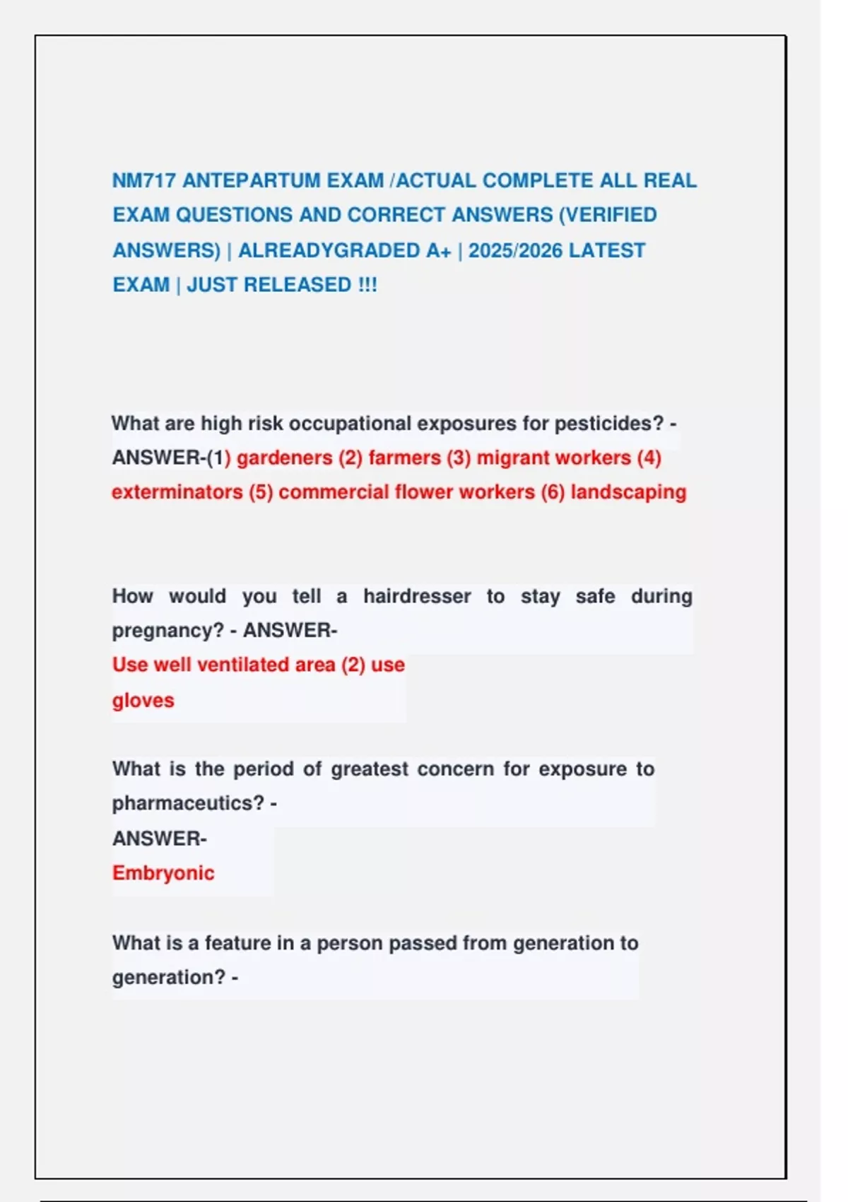 EXAM QUESTIONS AND CORRECT ANSWERS (VERIFIED
