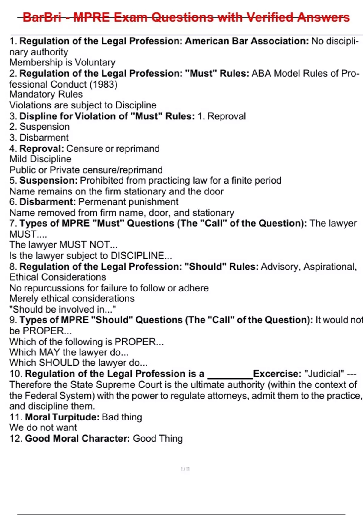 7. Types of MPRE "Must" Questions (The "Call" of the Question): The lawyer
