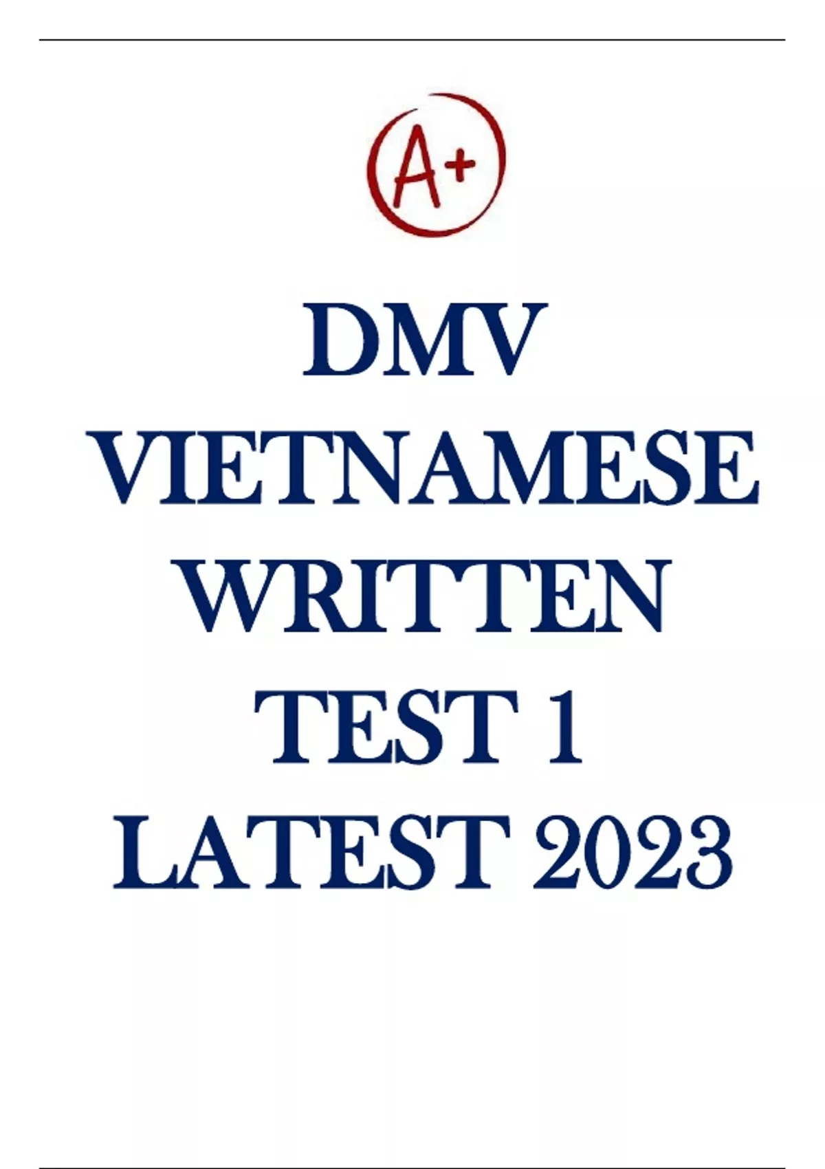 Dmv Vietnamese Written Test 1 Latest 2023 with complete solution