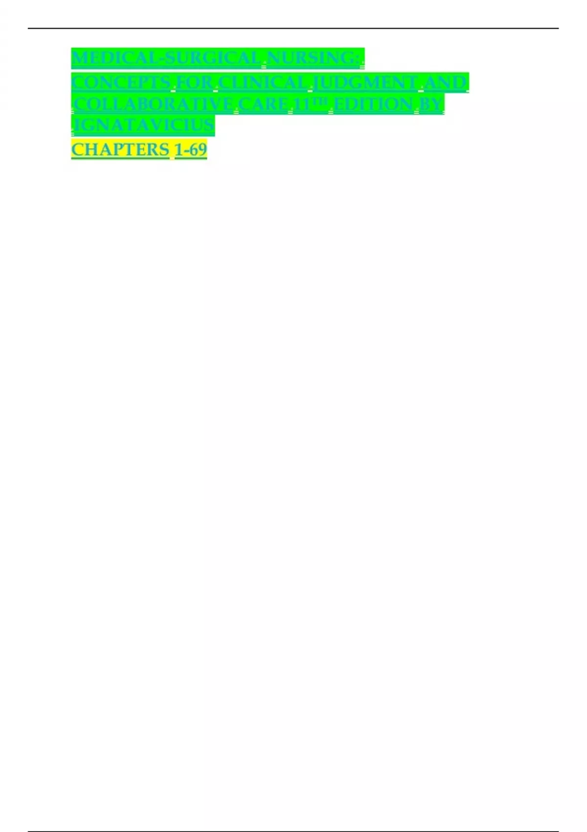 FULL TEST BANK FOR MEDICAL SURGICAL NURSING CONCEPTS FOR CLINICAL JUDGEMENT AND COLLABORATIVE CARE 11TH EDITION | ISBN: 9780323878265