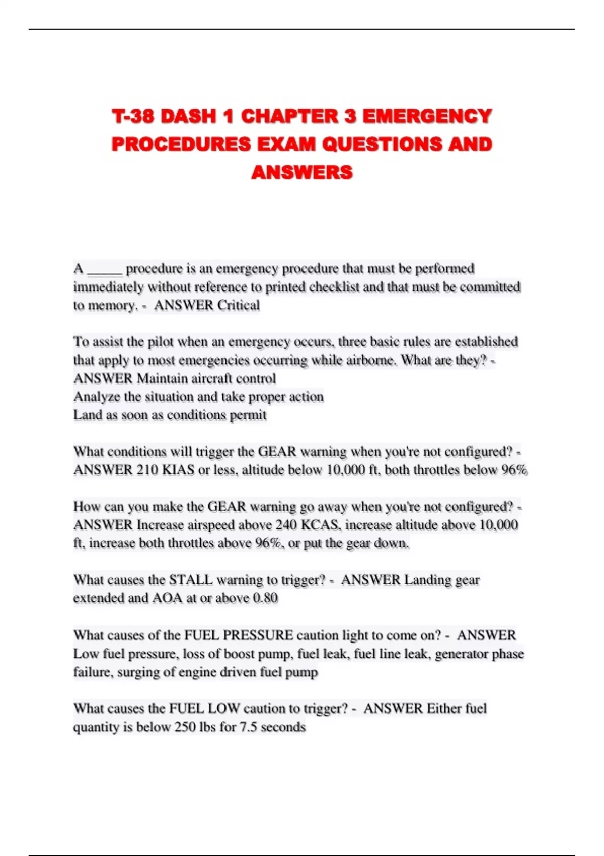 T-38 DASH 1 CHAPTER 3 EMERGENCY