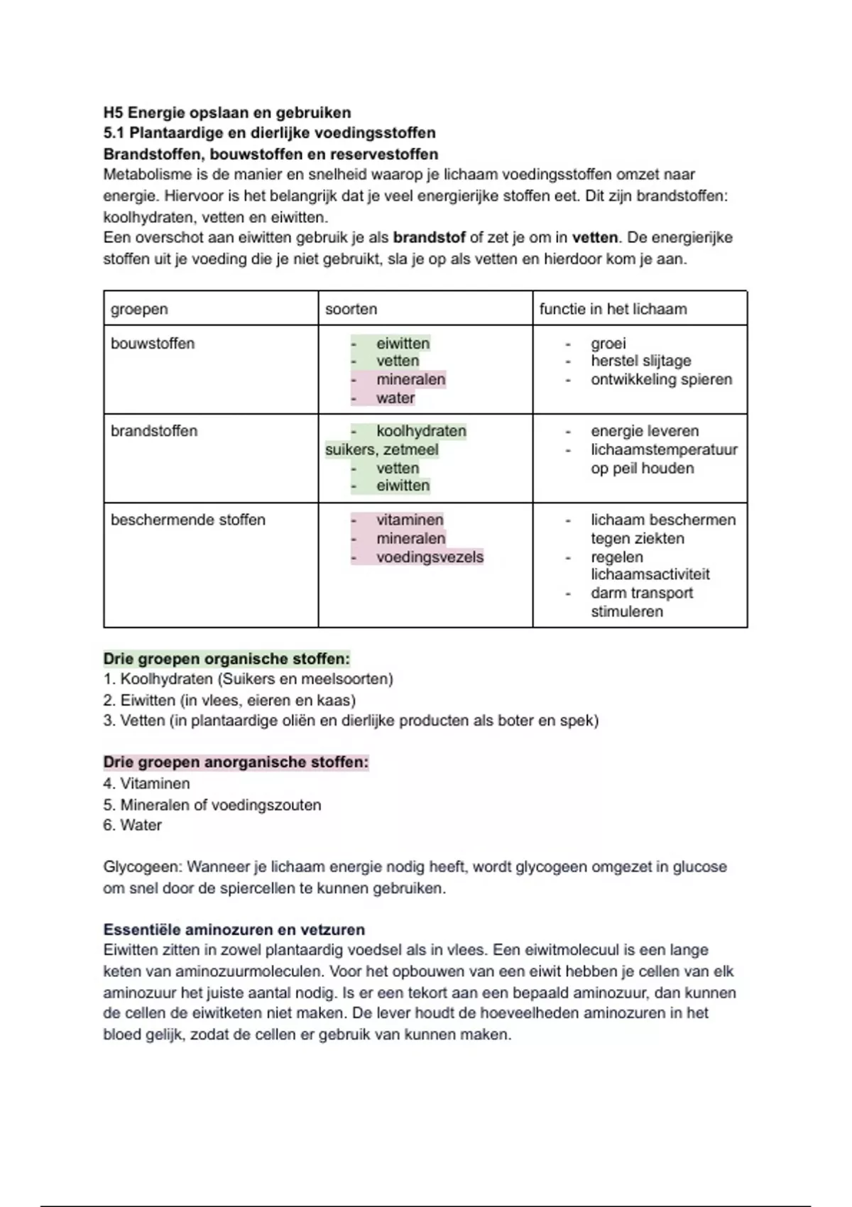 5.1 Plantaardige en dierlijke voedingsstoffen