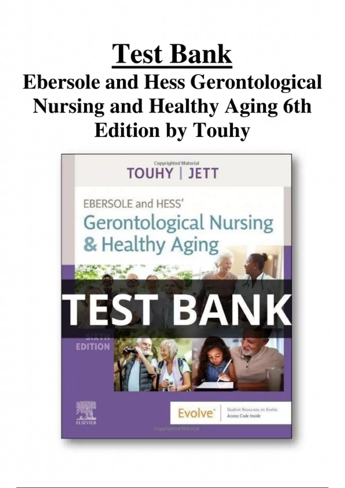 Get the updated Test Bank for Ebersole and Hess’ Gerontological Nursing and Healthy Aging 6th Edition (Version 2) by Kathleen Touhy and Brenda Jett. This comprehensive resource includes NCLEX-style questions with correct answers focused on older adult care, healthy aging, chronic illness management, and evidence-based gerontological nursing. Perfect for nursing students and educators.