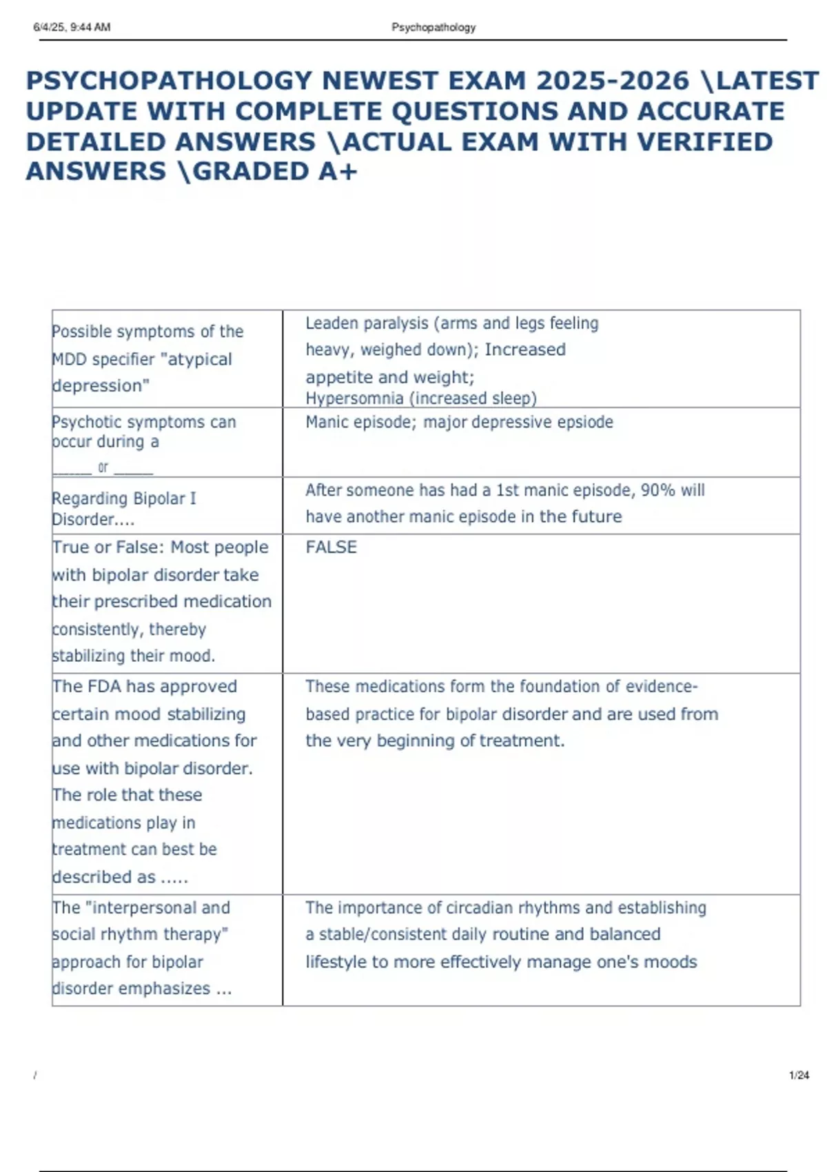 PSYCHOPATHOLOGY NEWEST EXAM LATEST UPDATE WITH COMPLETE QUESTIONS AND ACCURATE DETAILED ANSWERS ACTUAL EXAM WITH VERIFIED ANSWERS GRADED A+ PSYCHOPATHOLOGY NEWEST EXAM LATEST UPDATE WITH COMPLETE QUESTIONS AND ACCURATE DETAILED ANSWERS ACTUAL EXAM WITH VERIFIED ANSWERS GRADED A+ PSYCHOPATHOLOGY NEWEST EXAM LATEST UPDATE WITH COMPLETE QUESTIONS AND ACCURATE DETAILED ANSWERS ACTUAL EXAM WITH VERIFIED ANSWERS GRADED A+ PSYCHOPATHOLOGY NEWEST EXAM LATEST UPDATE WITH COMPLETE QUESTIONS AND ACCURATE DETAILED ANSWERS ACTUAL EXAM WITH VERIFIED ANSWERS GRADED A+ PSYCHOPATHOLOGY NEWEST EXAM LATEST UPDATE WITH COMPLETE QUESTIONS AND ACCURATE DETAILED ANSWERS ACTUAL EXAM WITH VERIFIED ANSWERS GRADED A+ PSYCHOPATHOLOGY NEWEST EXAM LATEST UPDATE WITH COMPLETE QUESTIONS AND ACCURATE DETAILED ANSWERS ACTUAL EXAM WITH VERIFIED ANSWERS GRADED A+ PSYCHOPATHOLOGY NEWEST EXAM LATEST UPDATE WITH COMPLETE QUESTIONS AND ACCURATE DETAILED ANSWERS ACTUAL EXAM WITH VERIFIED ANSWERS GRADED A+ PSYCHOPATHOLOGY NEWEST EXAM LATEST UPDATE WITH COMPLETE QUESTIONS AND ACCURATE DETAILED ANSWERS ACTUAL EXAM WITH VERIFIED ANSWERS GRADED A+ PSYCHOPATHOLOGY NEWEST EXAM LATEST UPDATE WITH COMPLETE QUESTIONS AND ACCURATE DETAILED ANSWERS ACTUAL EXAM WITH VERIFIED ANSWERS GRADED A+ PSYCHOPATHOLOGY NEWEST EXAM LATEST UPDATE WITH COMPLETE QUESTIONS AND ACCURATE DETAILED ANSWERS ACTUAL EXAM WITH VERIFIED ANSWERS GRADED A+ PSYCHOPATHOLOGY NEWEST EXAM LATEST UPDATE WITH COMPLETE QUESTIONS AND ACCURATE DETAILED ANSWERS ACTUAL EXAM WITH VERIFIED ANSWERS GRADED A+ PSYCHOPATHOLOGY NEWEST EXAM LATEST UPDATE WITH COMPLETE QUESTIONS AND ACCURATE DETAILED ANSWERS ACTUAL EXAM WITH VERIFIED ANSWERS GRADED A+ PSYCHOPATHOLOGY NEWEST EXAM LATEST UPDATE WITH COMPLETE QUESTIONS AND ACCURATE DETAILED ANSWERS ACTUAL EXAM WITH VERIFIED ANSWERS GRADED A+ PSYCHOPATHOLOGY NEWEST EXAM LATEST UPDATE WITH COMPLETE QUESTIONS AND ACCURATE DETAILED ANSWERS ACTUAL EXAM WITH VERIFIED ANSWERS GRADED A+ PSYCHOPATHOLOGY NEWEST EXAM LATEST UPDATE WITH COMPLETE QUESTIONS AND ACCURATE DETAILED ANSWERS ACTUAL EXAM WITH VERIFIED ANSWERS GRADED A+ PSYCHOPATHOLOGY NEWEST EXAM LATEST UPDATE WITH COMPLETE QUESTIONS AND ACCURATE DETAILED ANSWERS ACTUAL EXAM WITH VERIFIED ANSWERS GRADED A+ PSYCHOPATHOLOGY NEWEST EXAM LATEST UPDATE WITH COMPLETE QUESTIONS AND ACCURATE DETAILED ANSWERS ACTUAL EXAM WITH VERIFIED ANSWERS GRADED A+ PSYCHOPATHOLOGY NEWEST EXAM LATEST UPDATE WITH COMPLETE QUESTIONS AND ACCURATE DETAILED ANSWERS ACTUAL EXAM WITH VERIFIED ANSWERS GRADED A+ PSYCHOPATHOLOGY NEWEST EXAM LATEST UPDATE WITH COMPLETE QUESTIONS AND ACCURATE DETAILED ANSWERS ACTUAL EXAM WITH VERIFIED ANSWERS GRADED A+