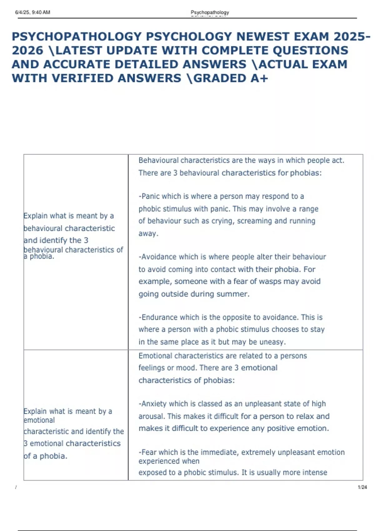 PSYCHOPATHOLOGY PSYCHOLOGY NEWEST EXAM 2025-