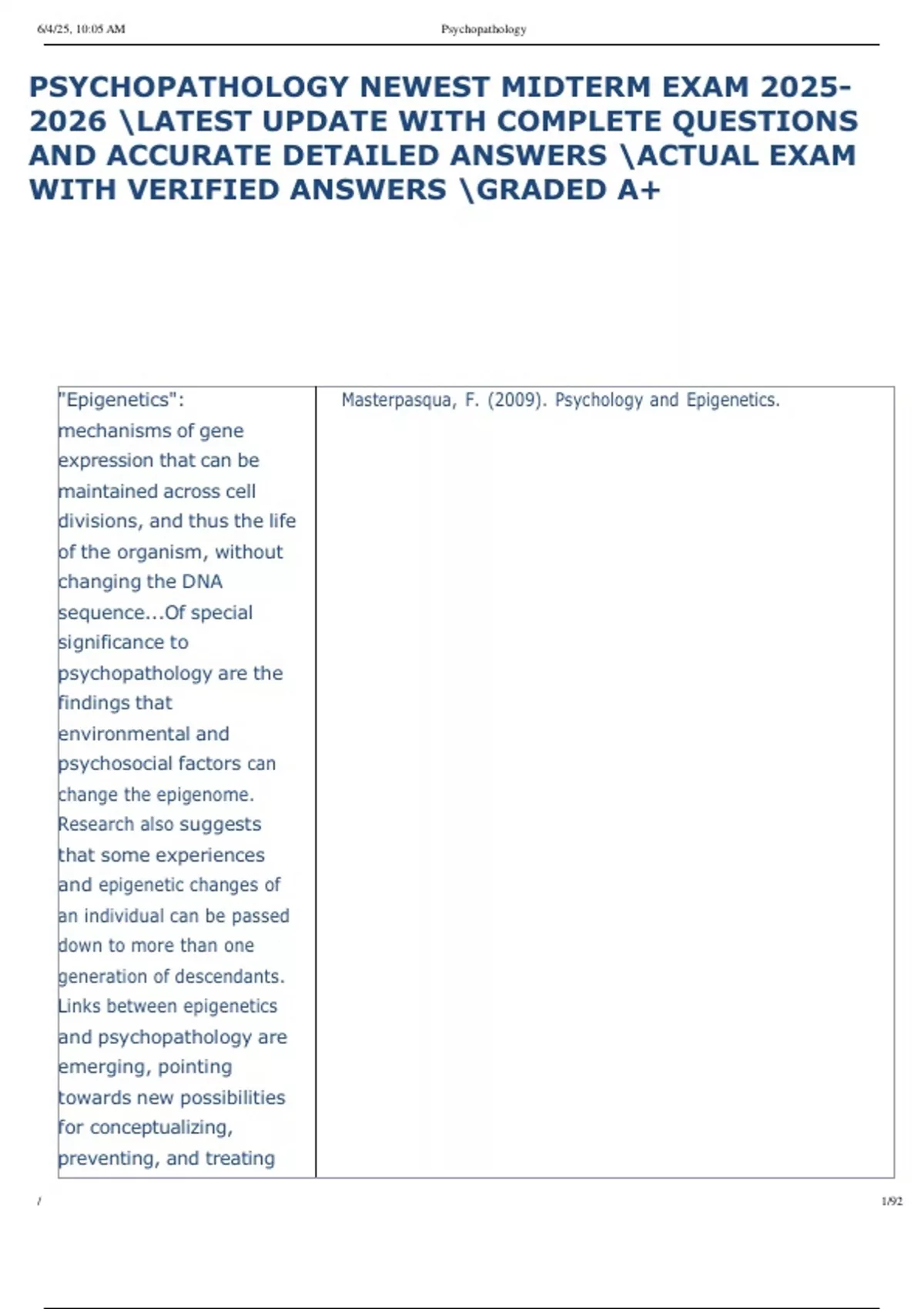 ,6/4/25, 10:00 AM Psychopathology Exam 1