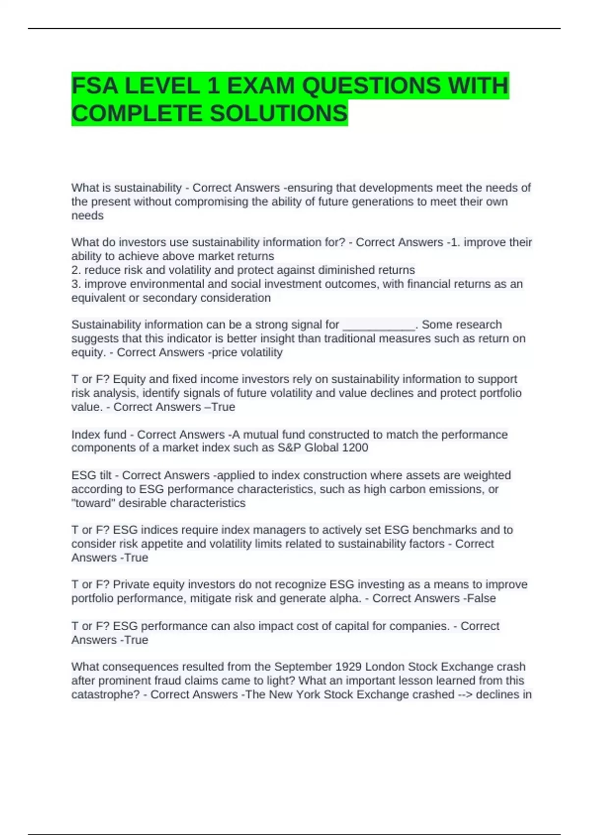 FSA LEVEL 1 EXAM QUESTIONS WITH