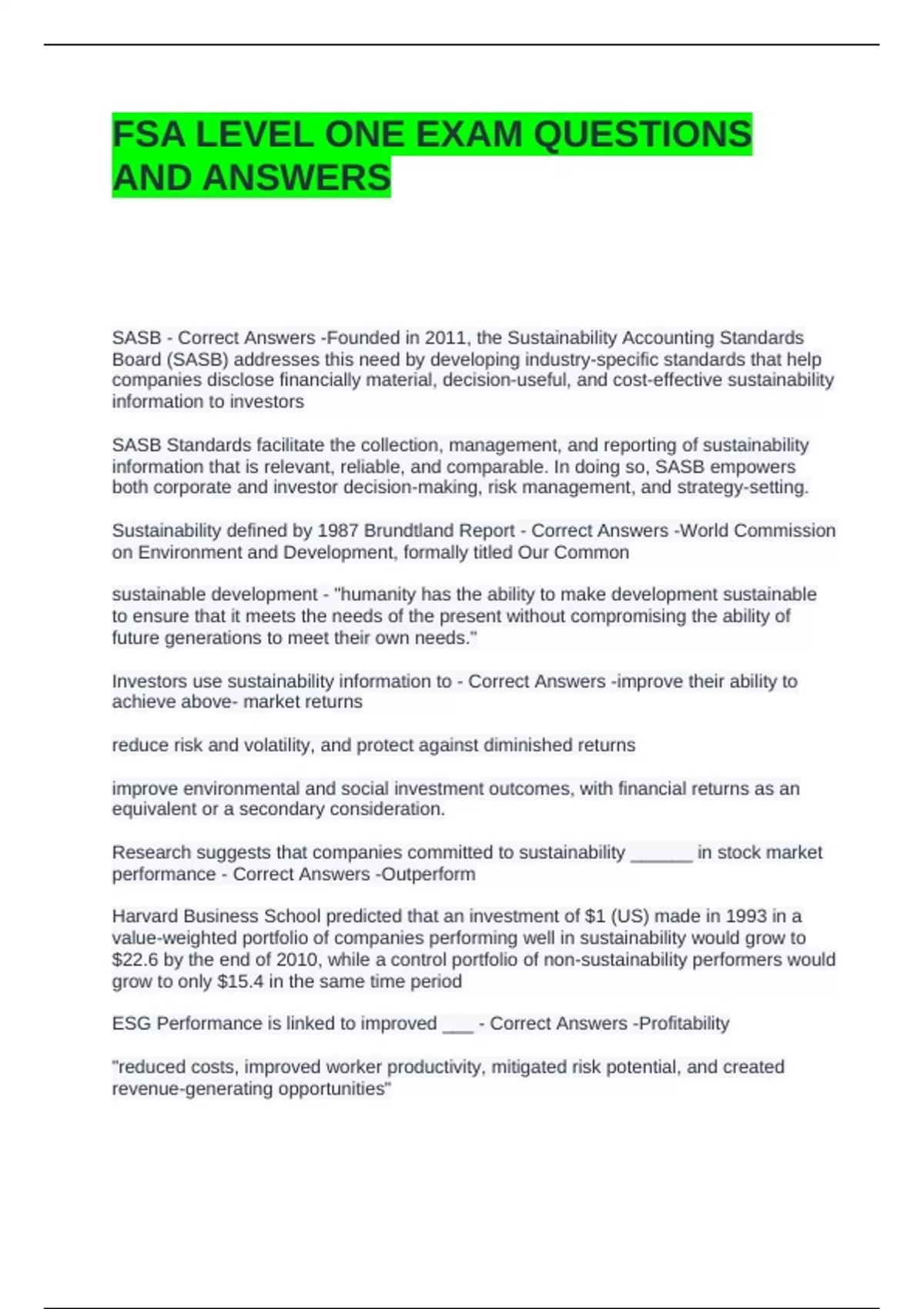 FSA LEVEL ONE EXAM QUESTIONS AND ANSWERS