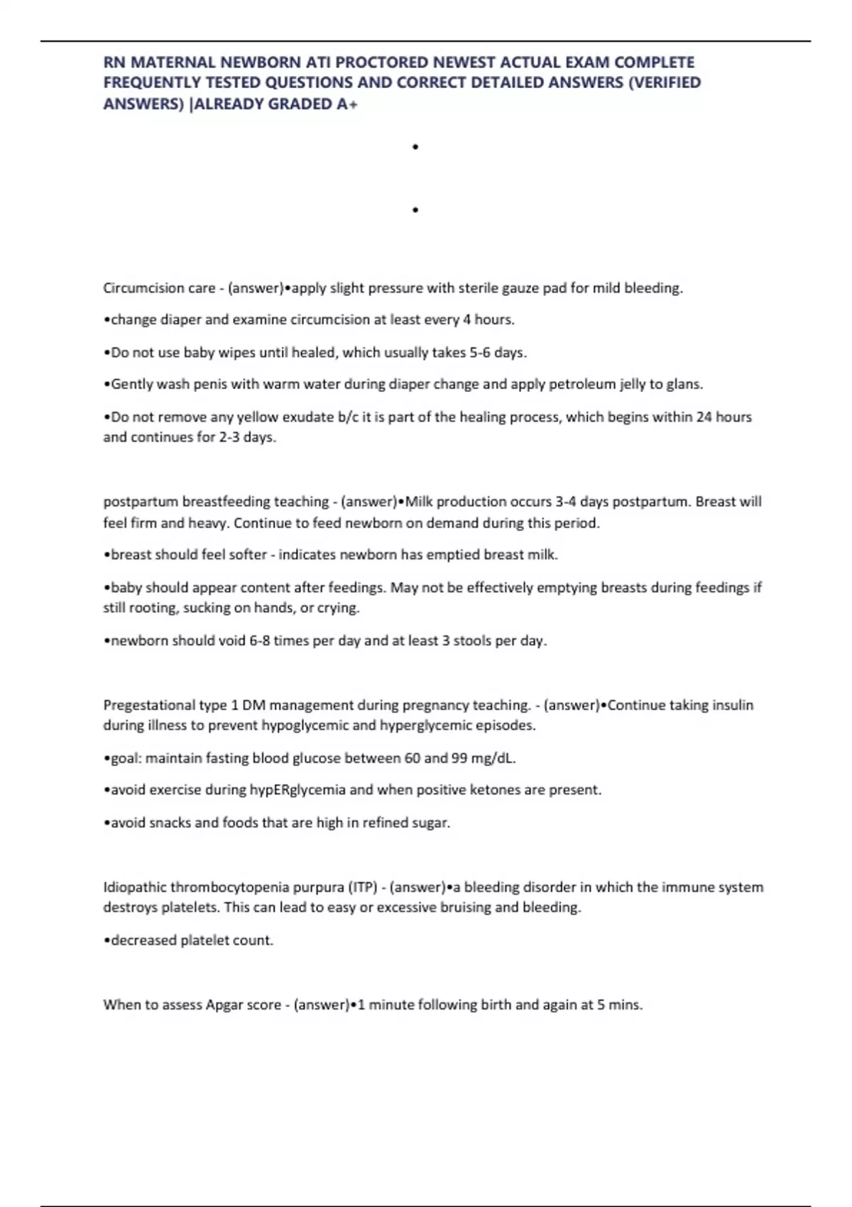 , RN MATERNAL NEWBORN ATI PROCTORED NEWEST ACTUAL EXAM COMPLETE