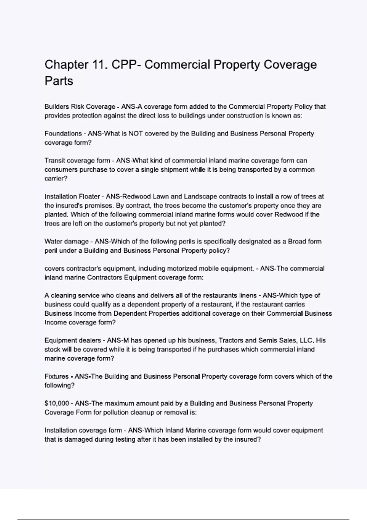 Chapter 11. CPP- Commercial Property Coverage Parts questions and answers