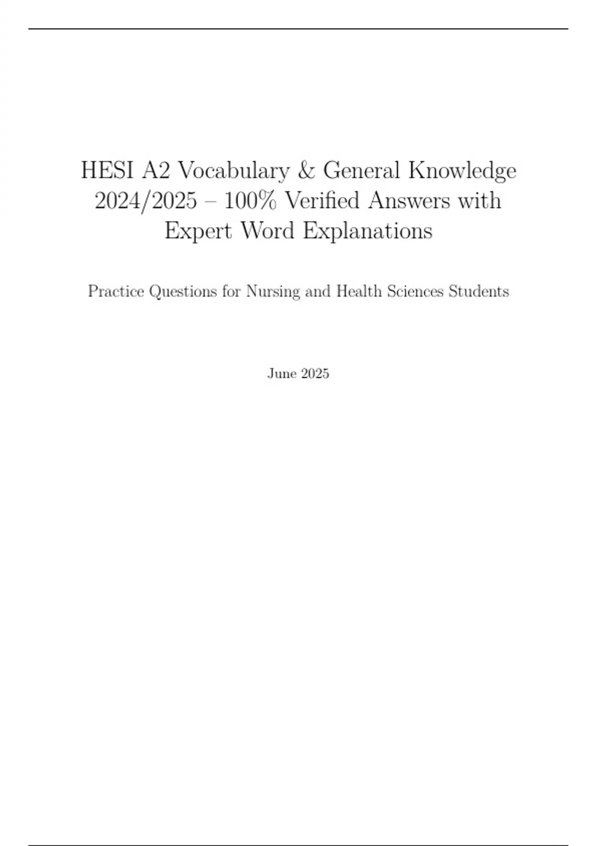 This document provides 80 unique HESI A2 Vocabulary & General Knowledge prac-
