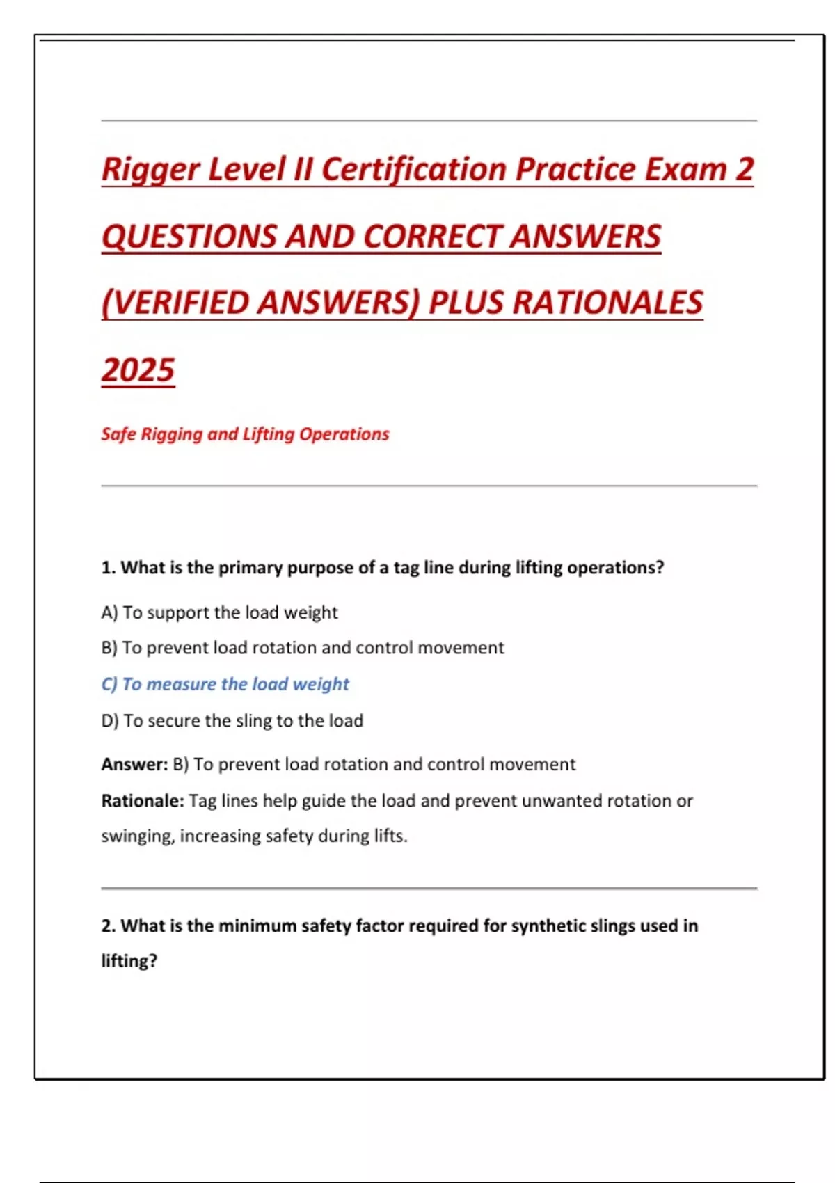 Rationale: Testing at 125% ensures the rigging assembly can safely handle loads