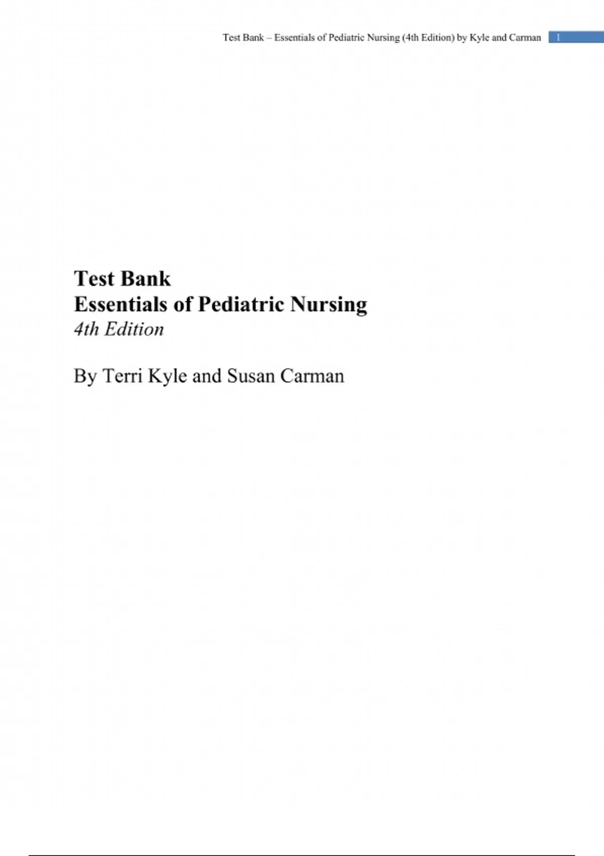 Download the complete Test Bank for Essentials of Pediatric Nursing, 4th Edition by Terri Kyle and Susan Carman. This NCLEX-style test bank includes accurate multiple-choice questions and detailed answers covering pediatric growth, development, care planning, and family-centered nursing. A must-have resource for nursing students preparing for pediatric exams.