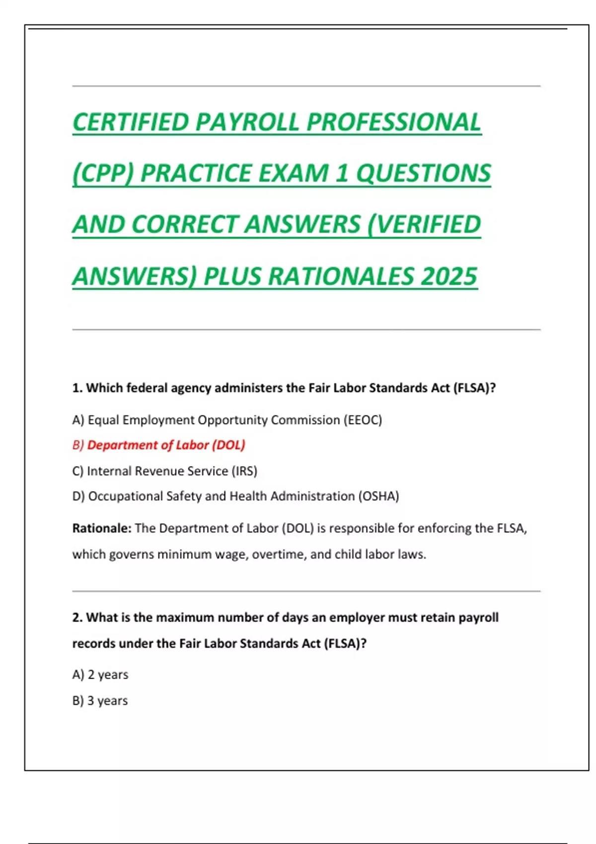 ANSWERS) PLUS RATIONALES 2025