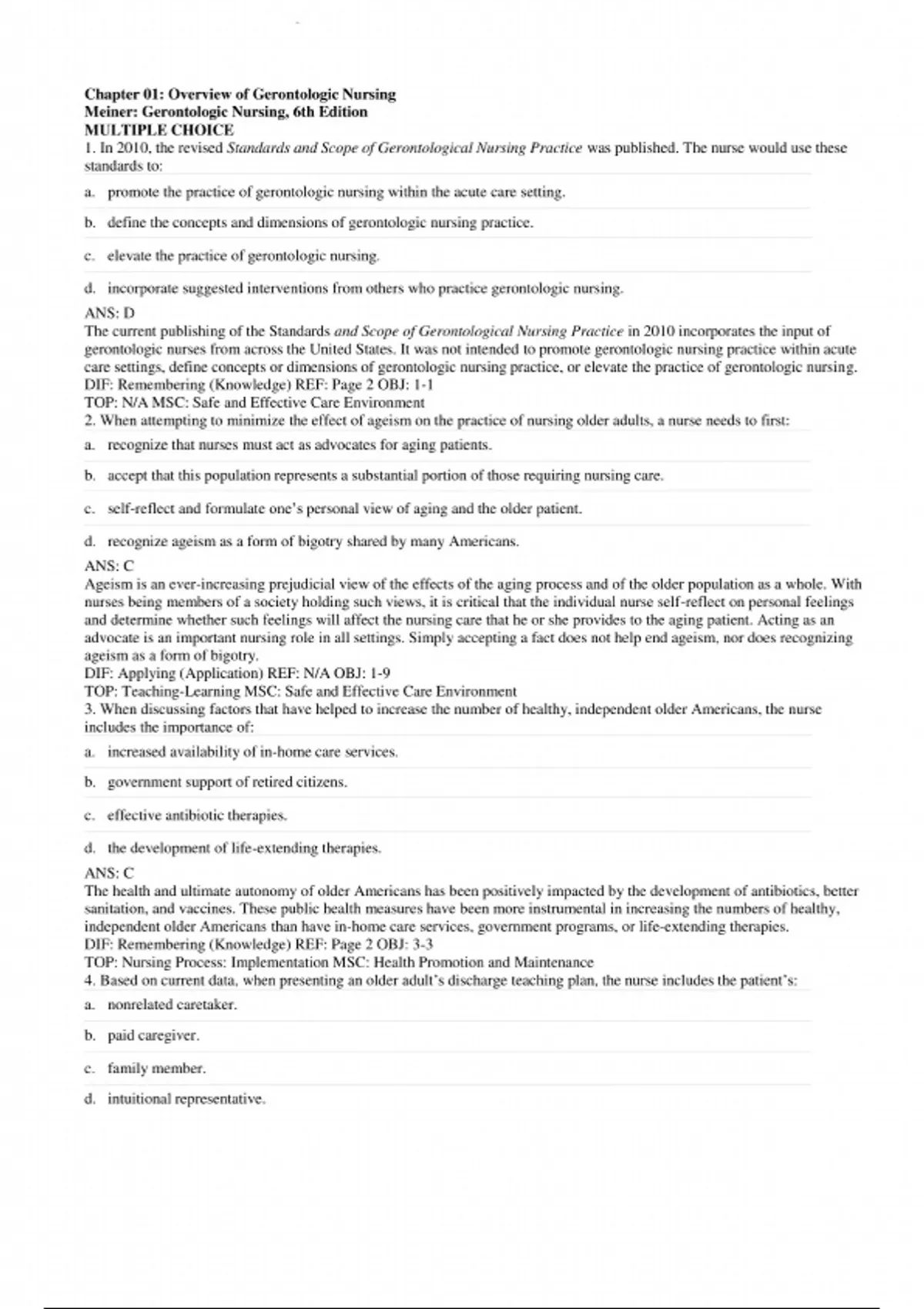 Access the full Test Bank for Gerontologic Nursing, 6th Edition by Sue E. Meiner and Jennifer J. Yeager. This NCLEX-style test bank includes comprehensive questions and detailed answers covering aging populations, chronic conditions, elder care planning, and evidence-based gerontologic nursing practices. Perfect for nursing students and instructors focusing on older adult care