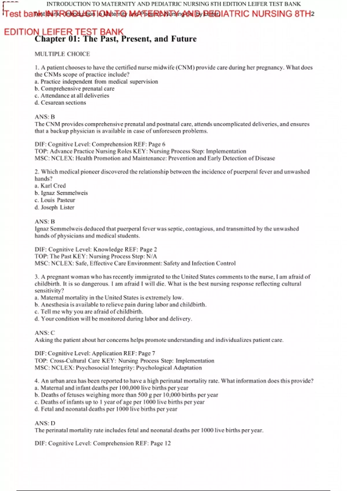 , INTRODUCTION TO MATERNITY AND PEDIATRIC NURSING 8TH EDITION LEIFER TEST BANK