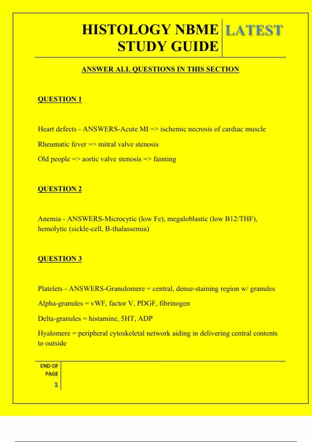 HISTOLOGY NBME STUDY GUIDE QUESTIONS AND ANSWERS 2025