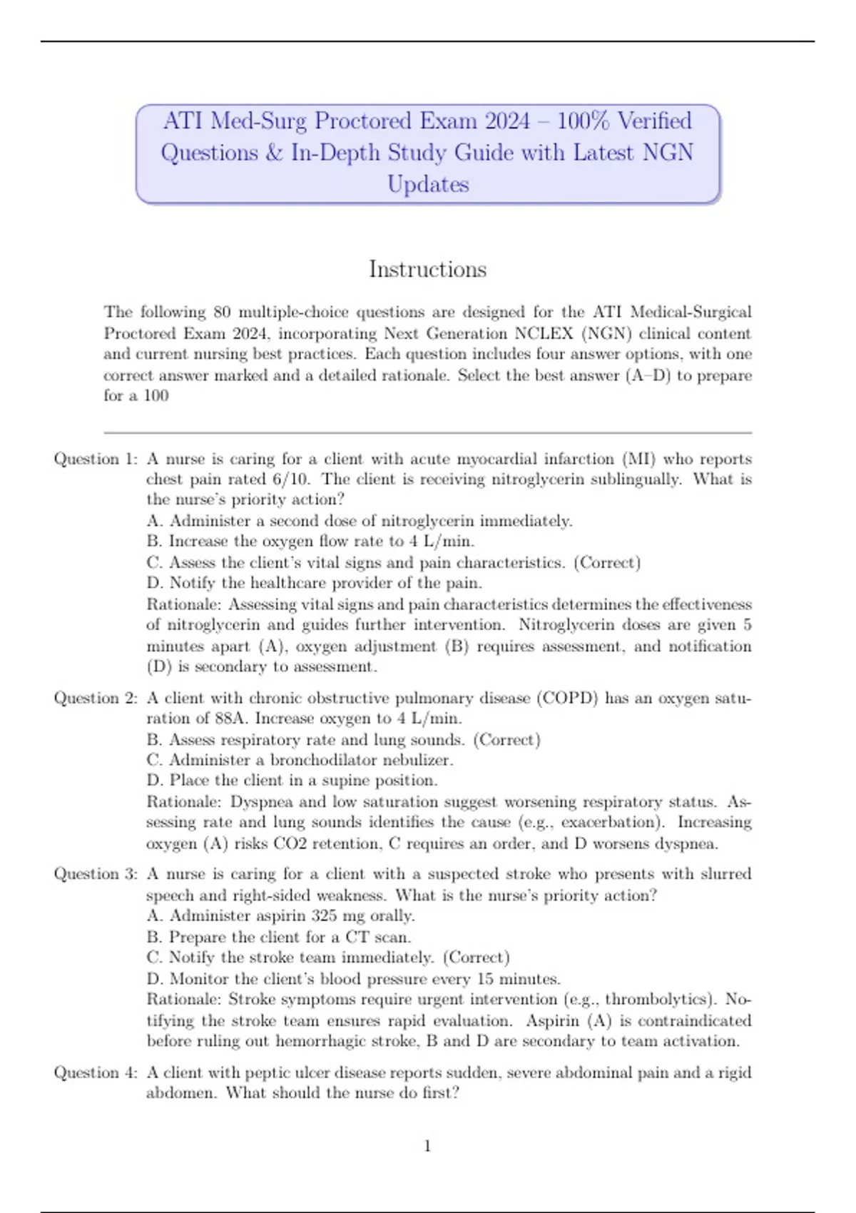 The following 80 multiple-choice questions are designed for the ATI Medical-Surgical