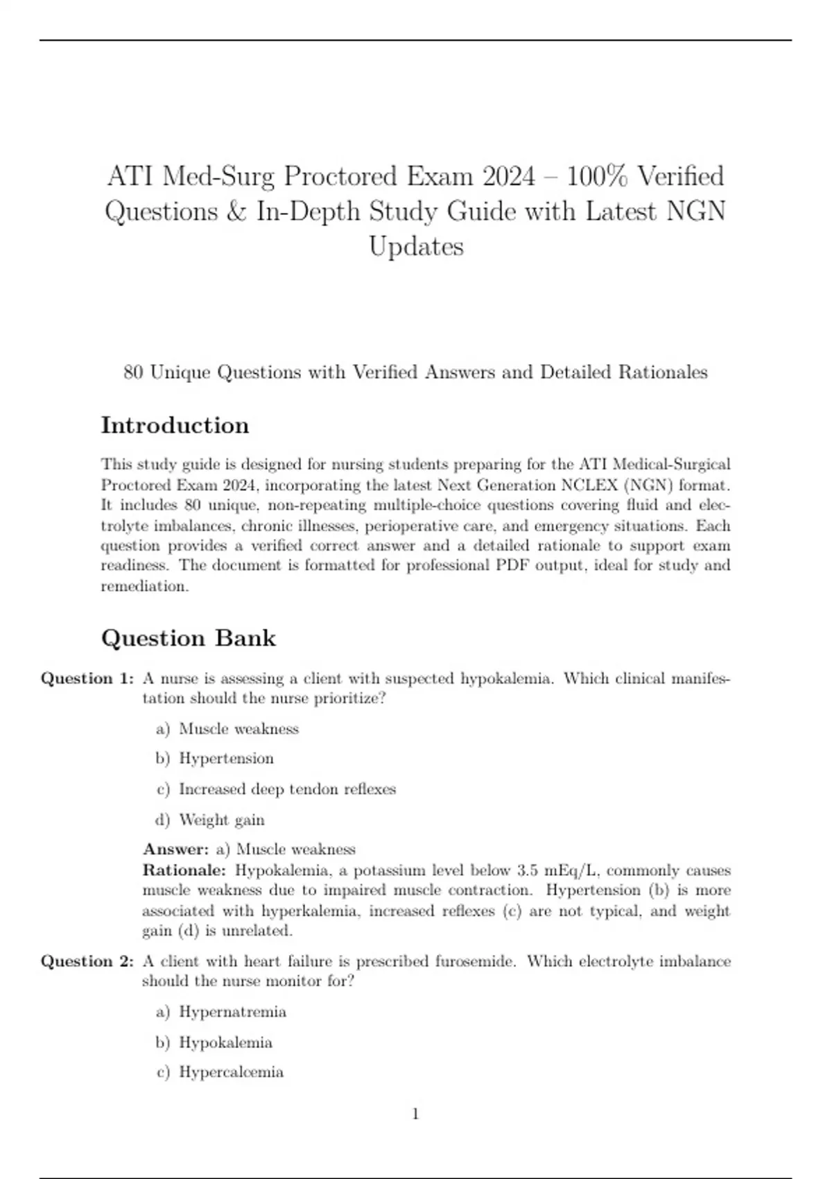This study guide is designed for nursing students preparing for the ATI Medical-Surgical