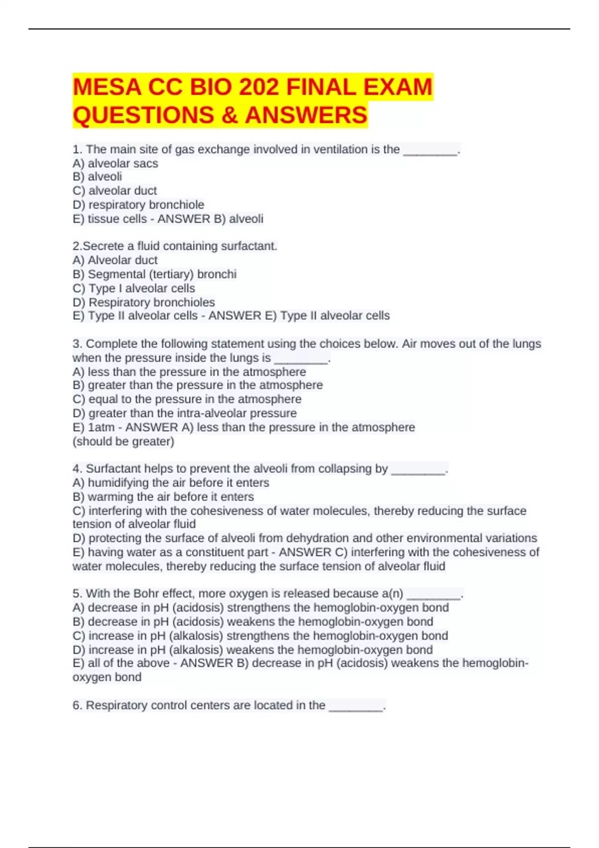 E) all of the above - ANSWER B) decrease in pH (acidosis) weakens the hemoglobin-