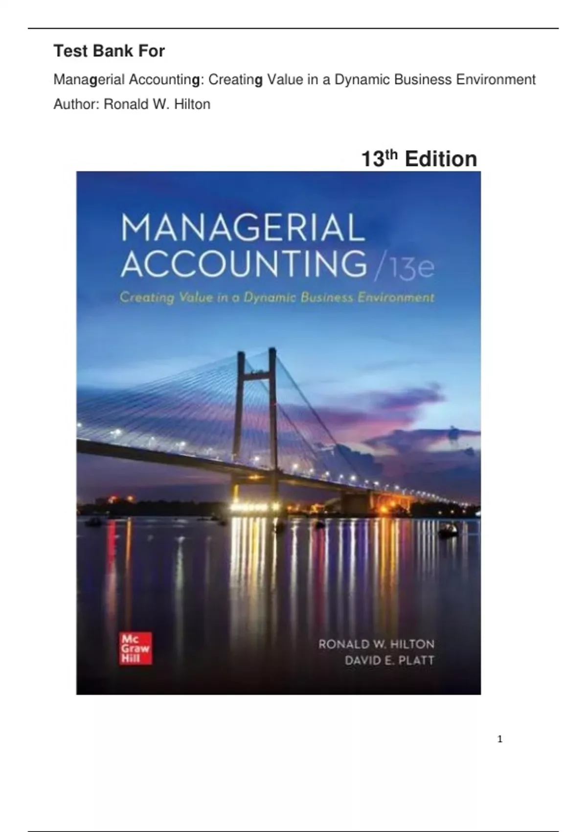Test Bank For Managerial Accounting: Creating Value in a Dynamic Business Environment, 13th Edition by Ronald W. Hilton . All Chapters 1-17