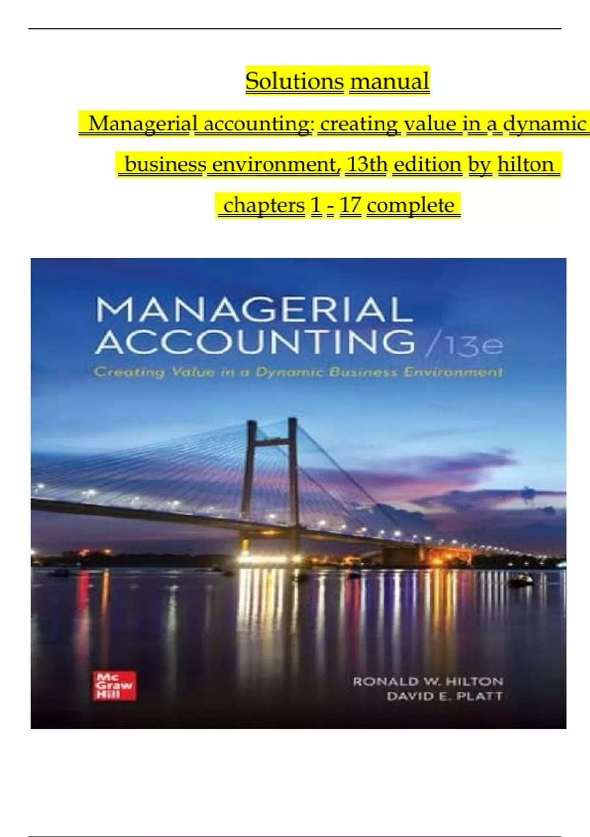 Solutions manual for Managerial Accounting: Creating Value in a Dynamic Business Environment, 13th Edition by Hilton