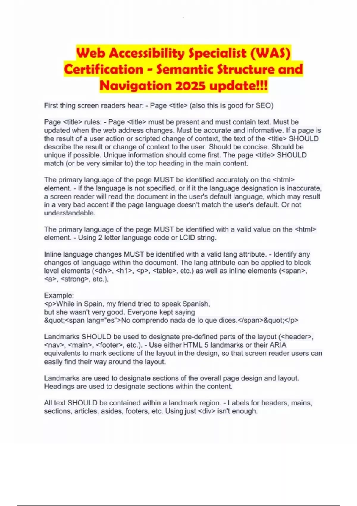 Web Accessibility Specialist (WAS) Certification - Semantic Structure and Navigation 2025 update!!!