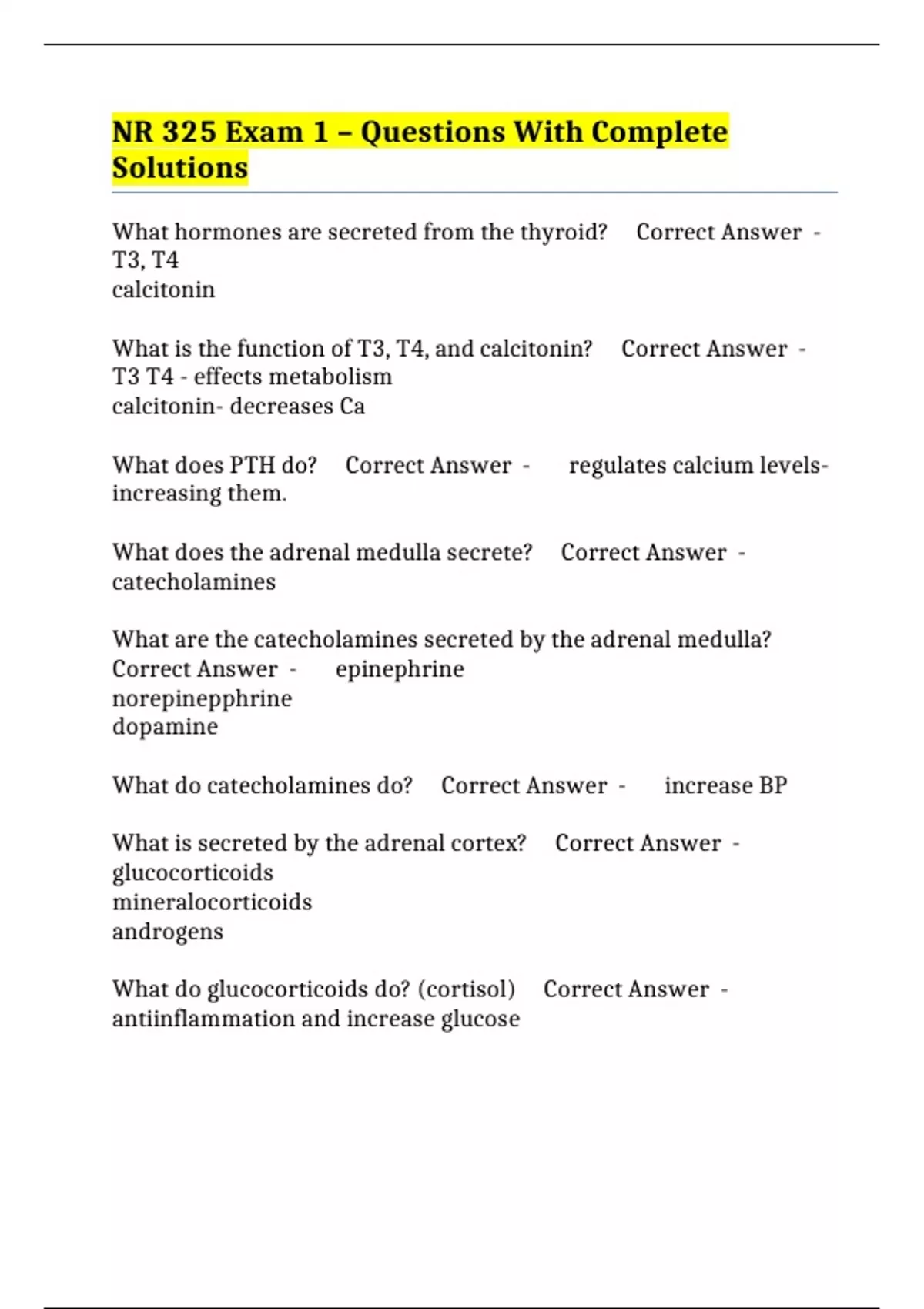 What is the function of T3, T4, and calcitonin? Correct Answer -