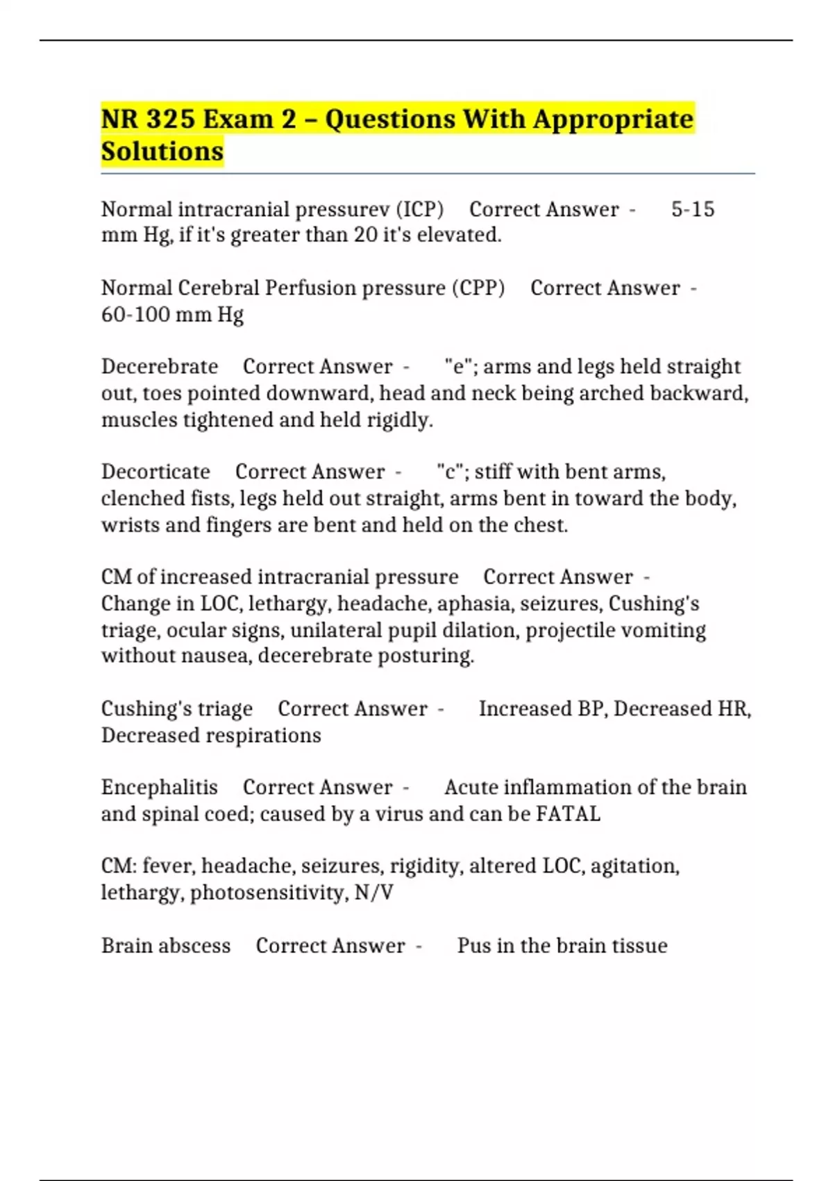 Normal intracranial pressurev (ICP) Correct Answer - 5-15