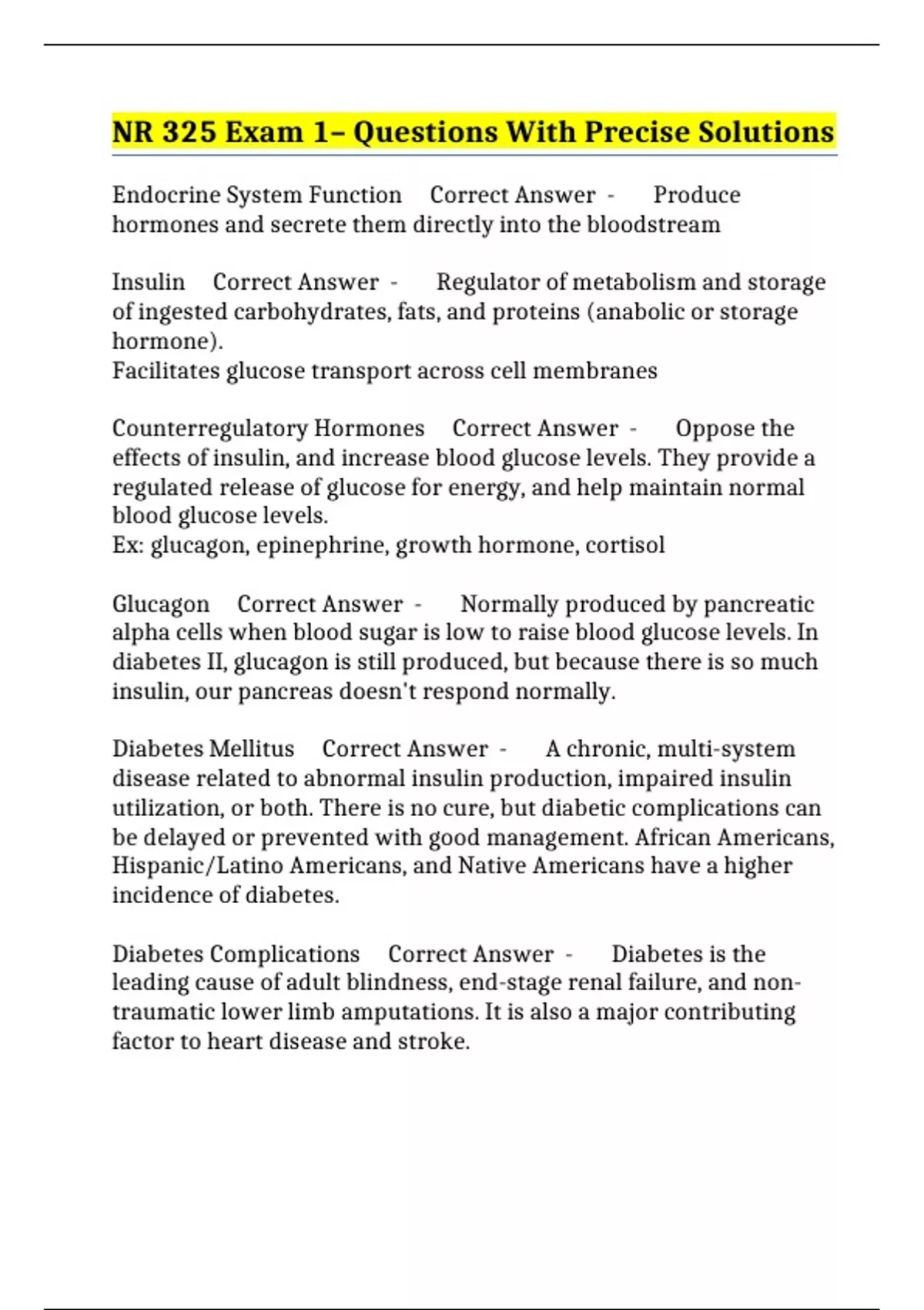 Diabetes Type II Clinical Manifestations Correct Answer -