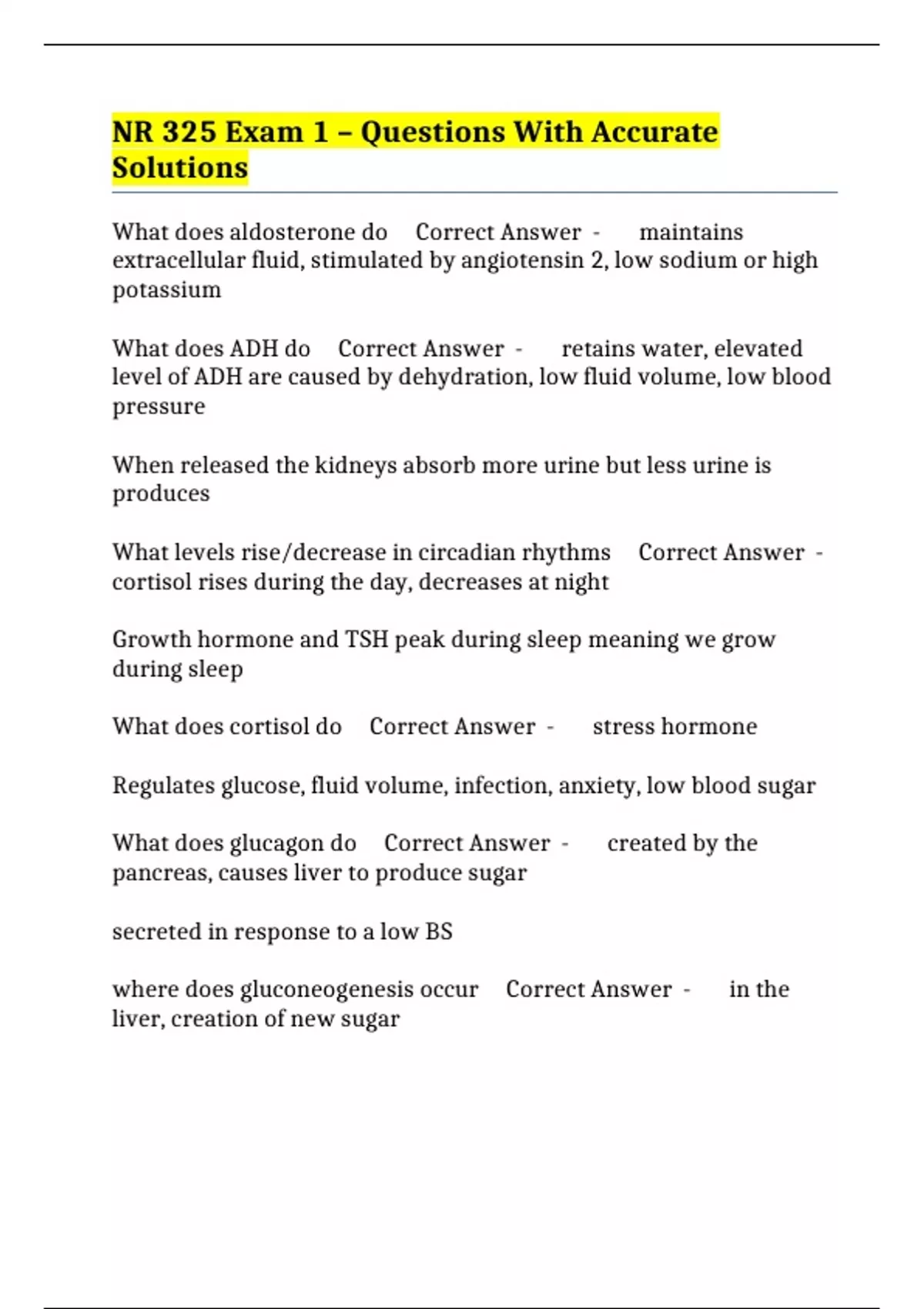 NR 325 Exam 1 – Questions With Accurate