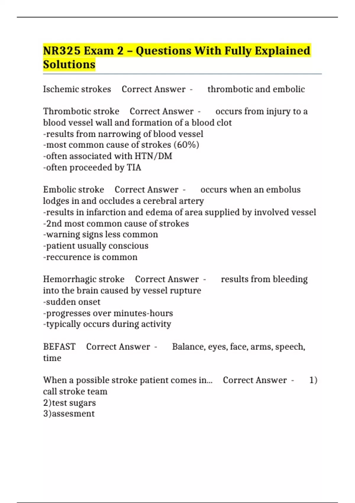 Hemorrhagic stroke Correct Answer - results from bleeding