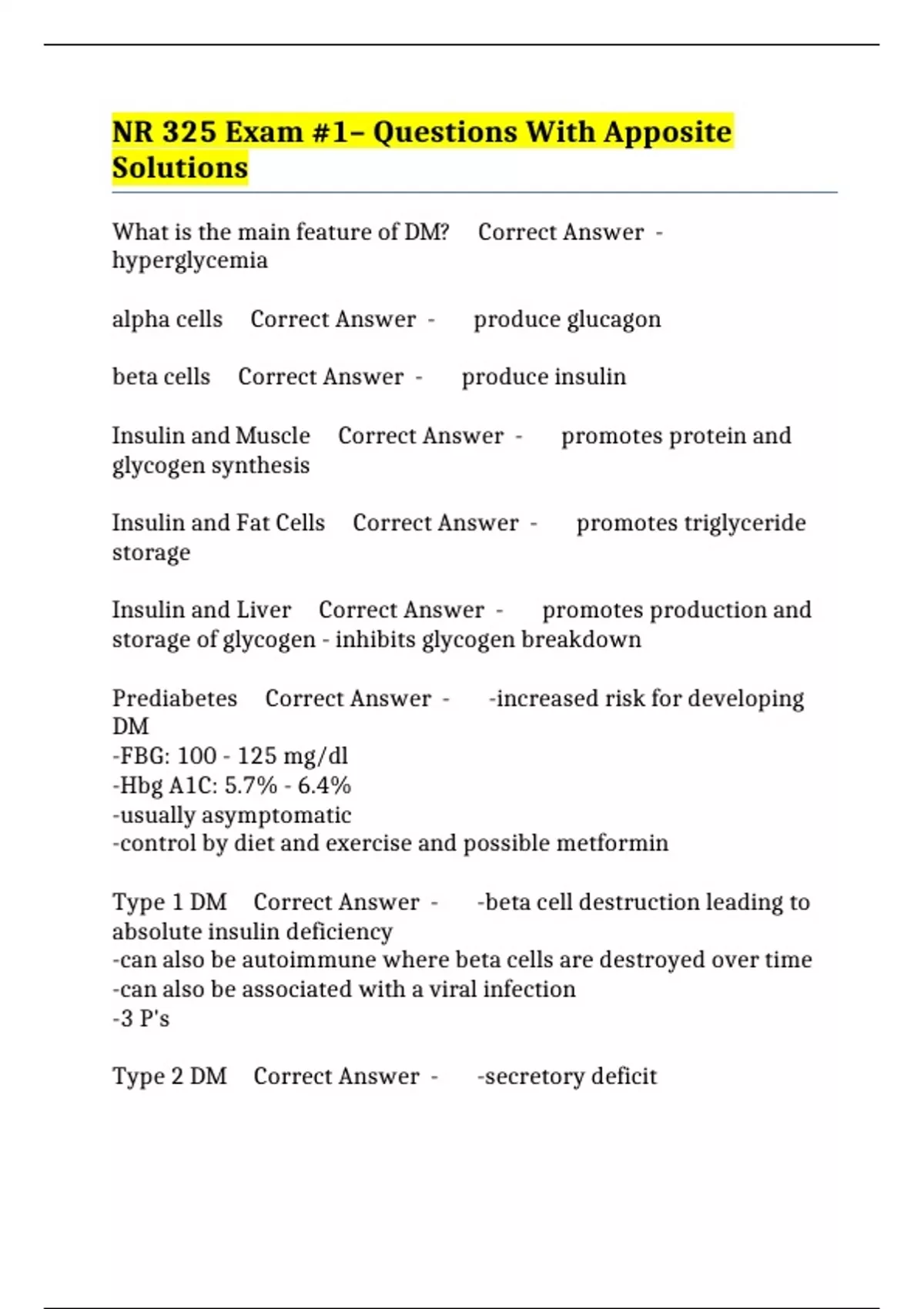 Type 1 DM Correct Answer - -beta cell destruction leading to
