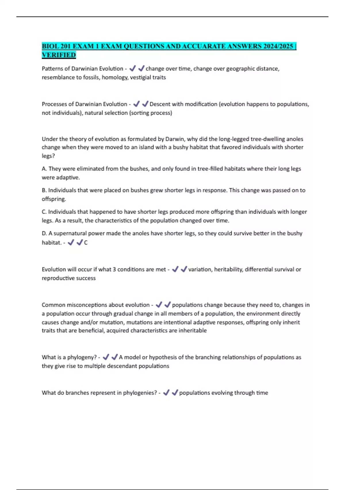 BIOL 201 EXAM 1 EXAM QUESTIONS AND ACCUARATE ANSWERS 2024/2025 |