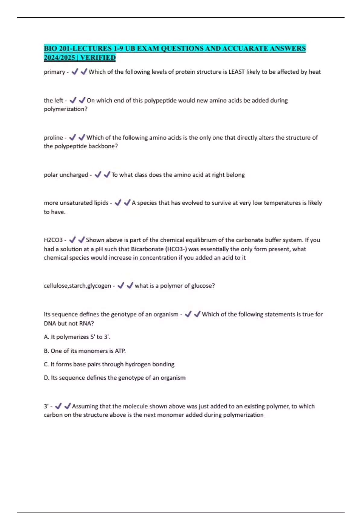 BIO 201-LECTURES 1-9 UB EXAM QUESTIONS 2025. Exam Questions and Correct Answers With 100% Correct Answers | Latest 2025 Update.