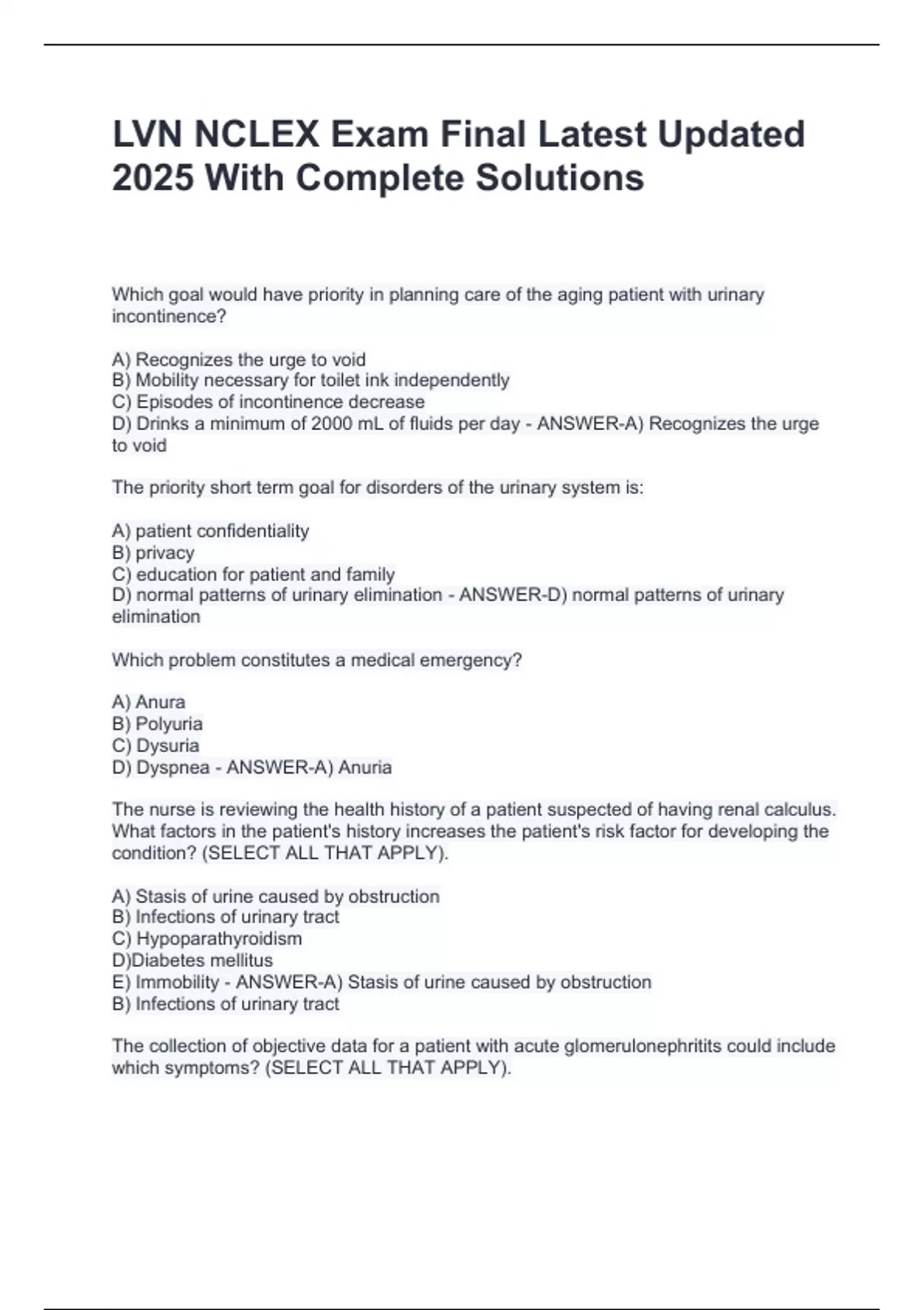 LVN NCLEX Exam Final Latest Updated