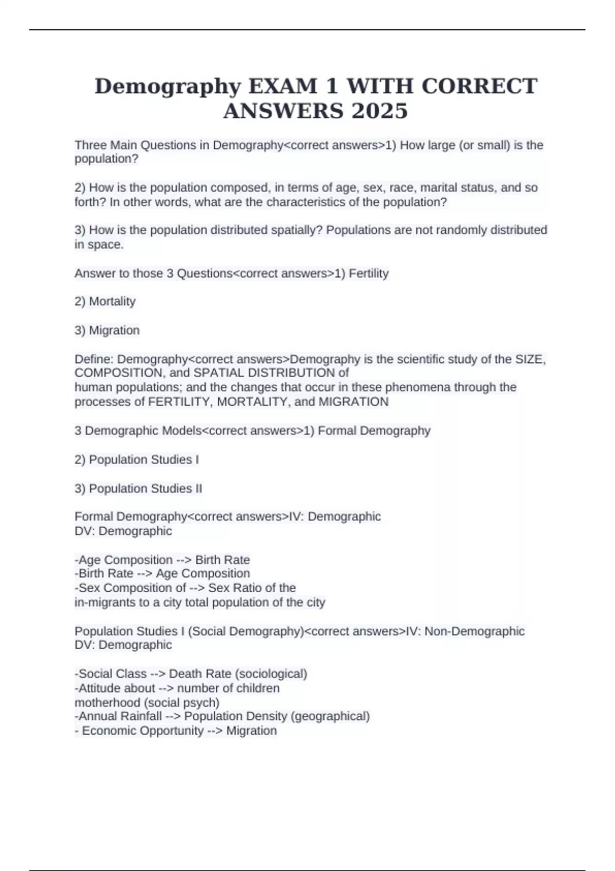 Population Studies II<correct answers>IV: Demographic