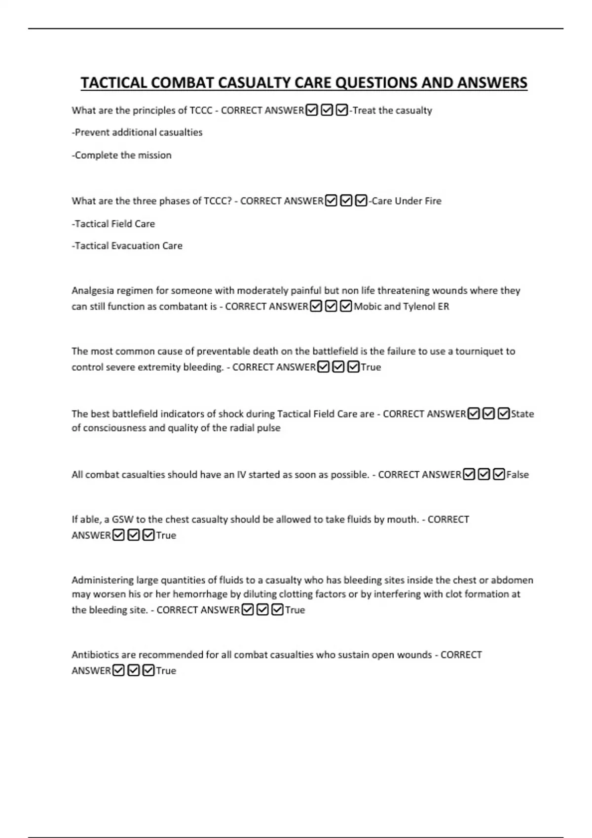 TACTICAL COMBAT CASUALTY CARE QUESTIONS AND ANSWERS
