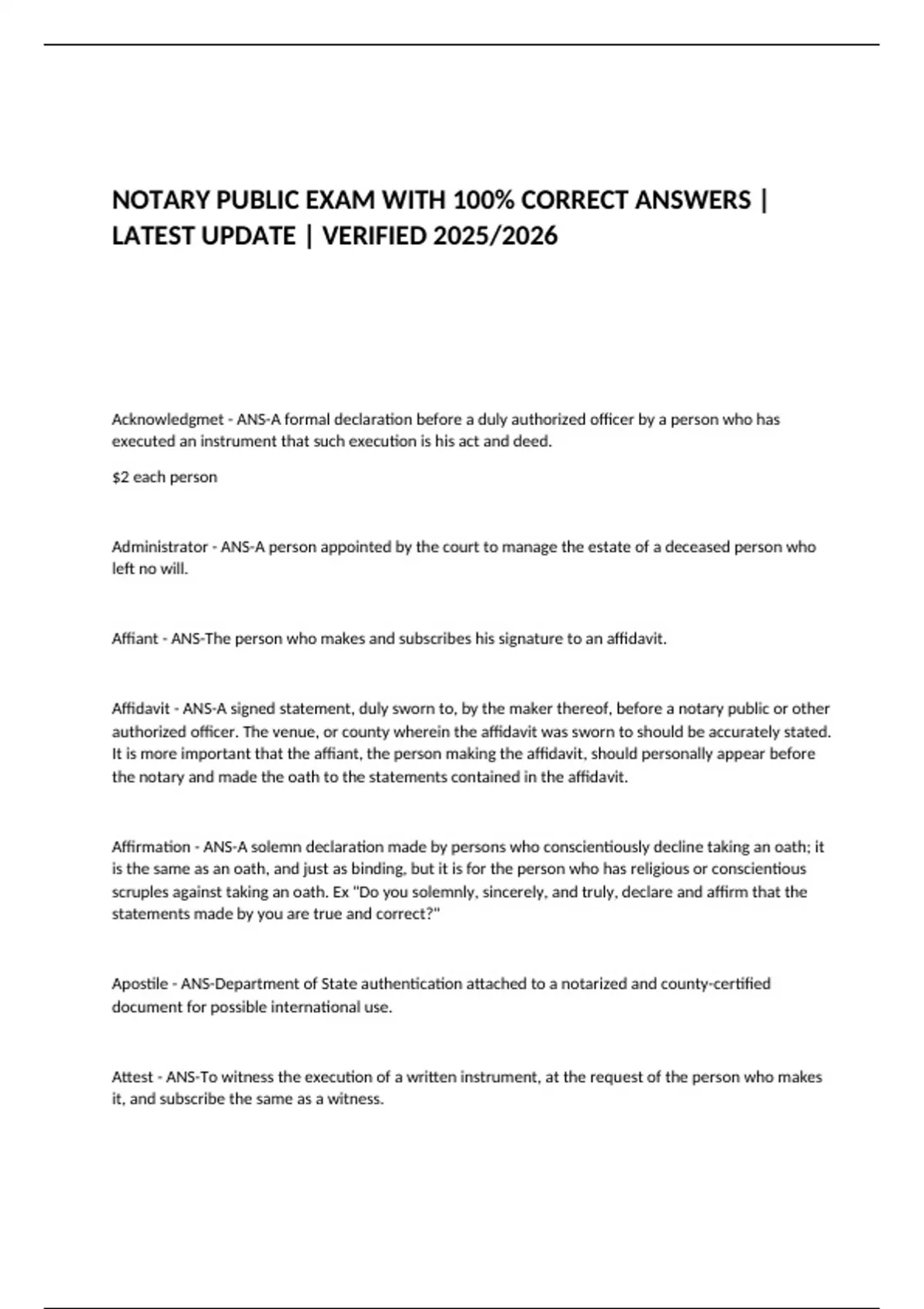 NOTARY PUBLIC EXAM WITH 100% CORRECT ANSWERS |