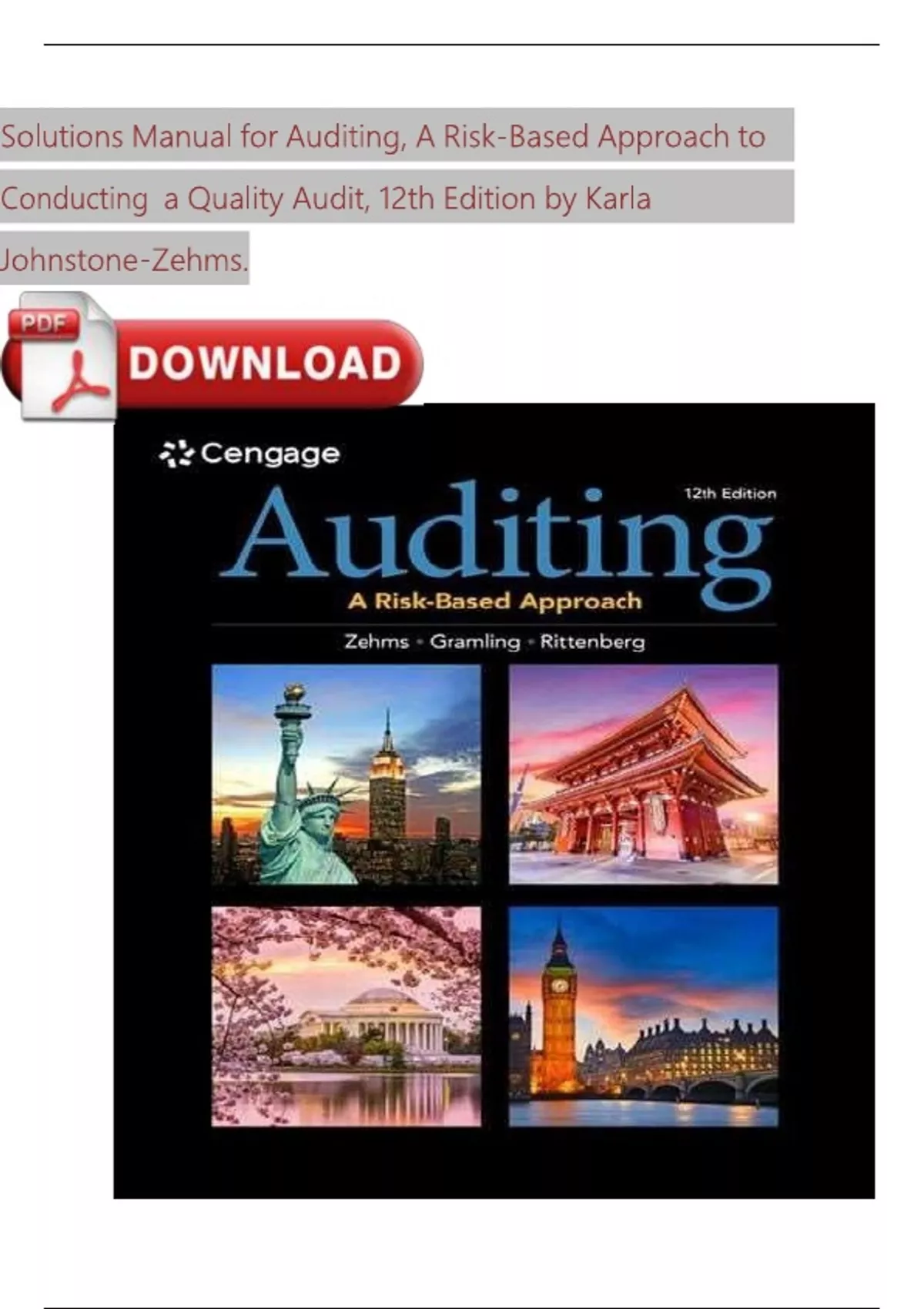 Solution Manual For Auditing. A Risk Based Approach To Conducting A Quality Audit. 12th Edition By Carla Johnstone Zehms