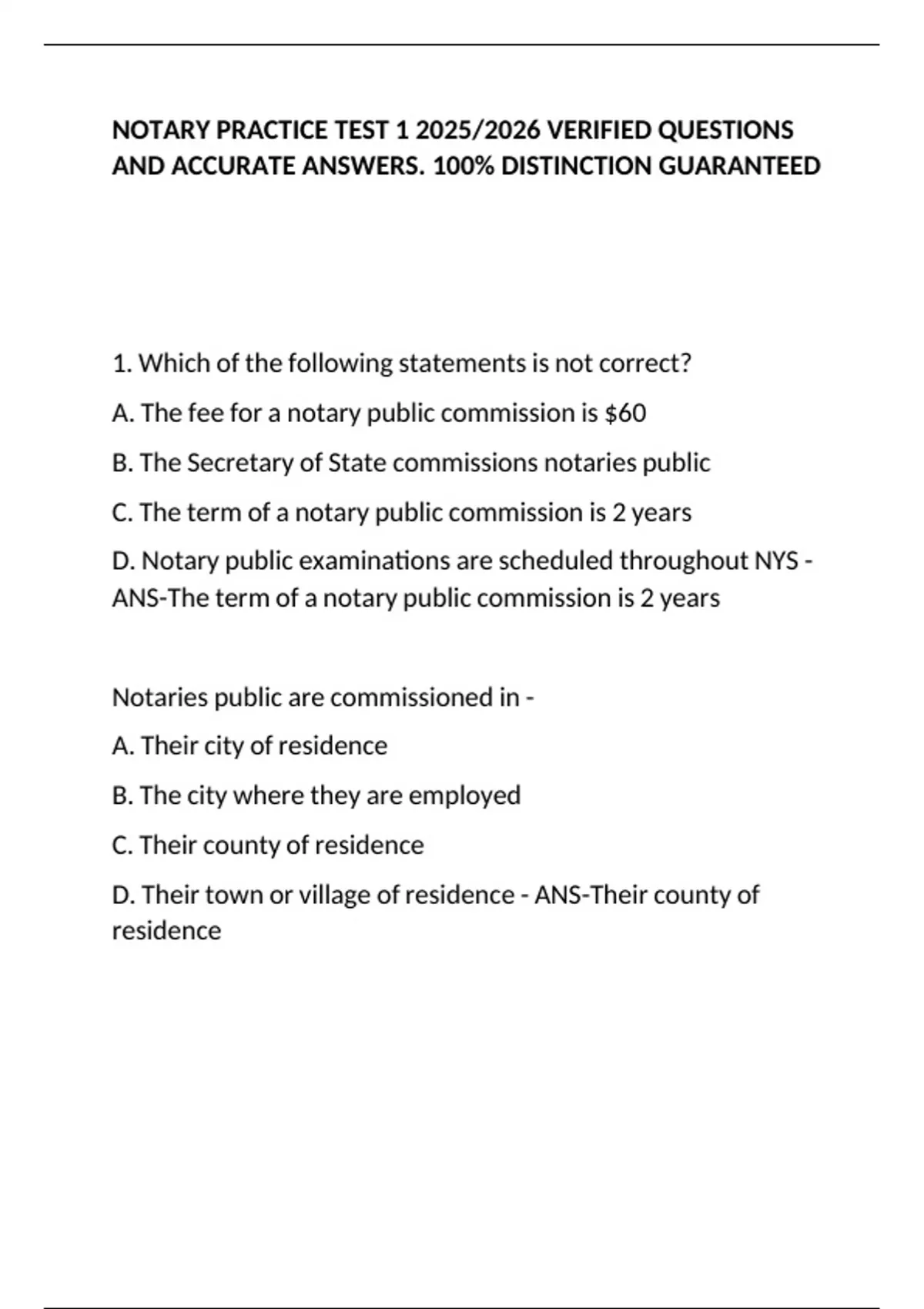 NOTARY PRACTICE TEST 1 2025/2026 VERIFIED QUESTIONS