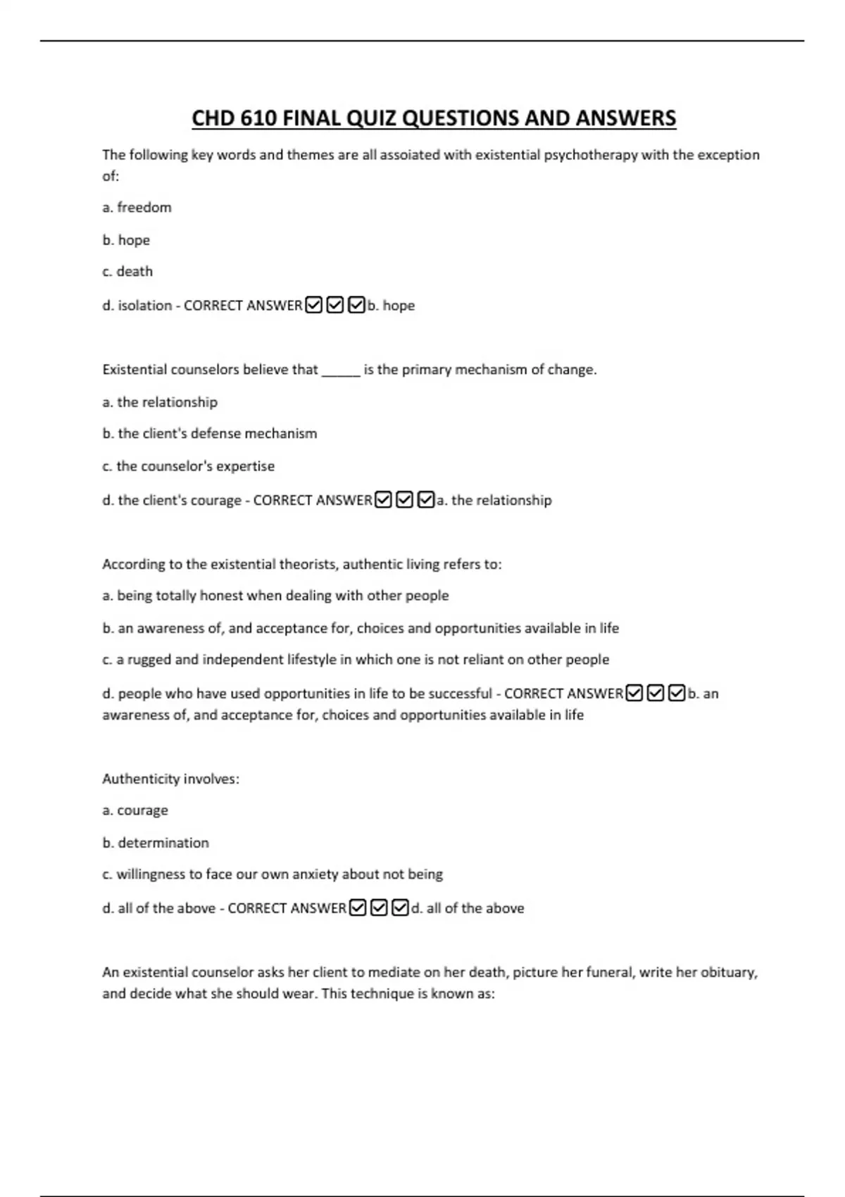 e. family systems therapy - CORRECT ANSWER✅✅✅d. existential therapy