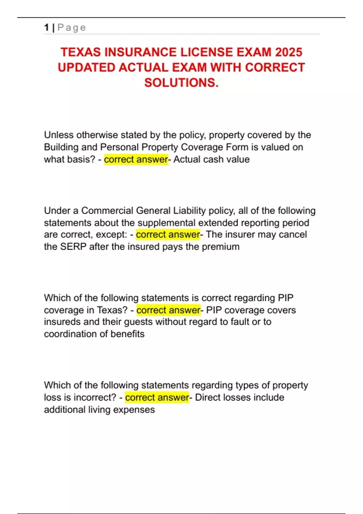 TEXAS INSURANCE LICENSE EXAM 2025 UPDATED ACTUAL EXAM WITH CORRECT SOLUTIONS.