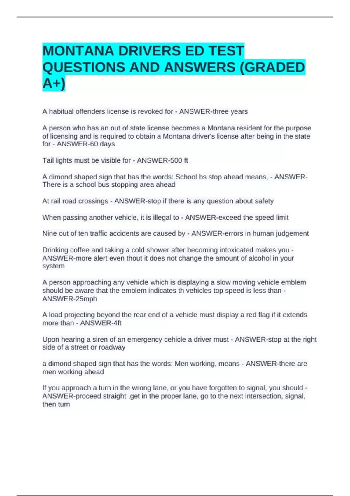 Nine out of ten traffic accidents are caused by - ANSWER-errors in human judgement