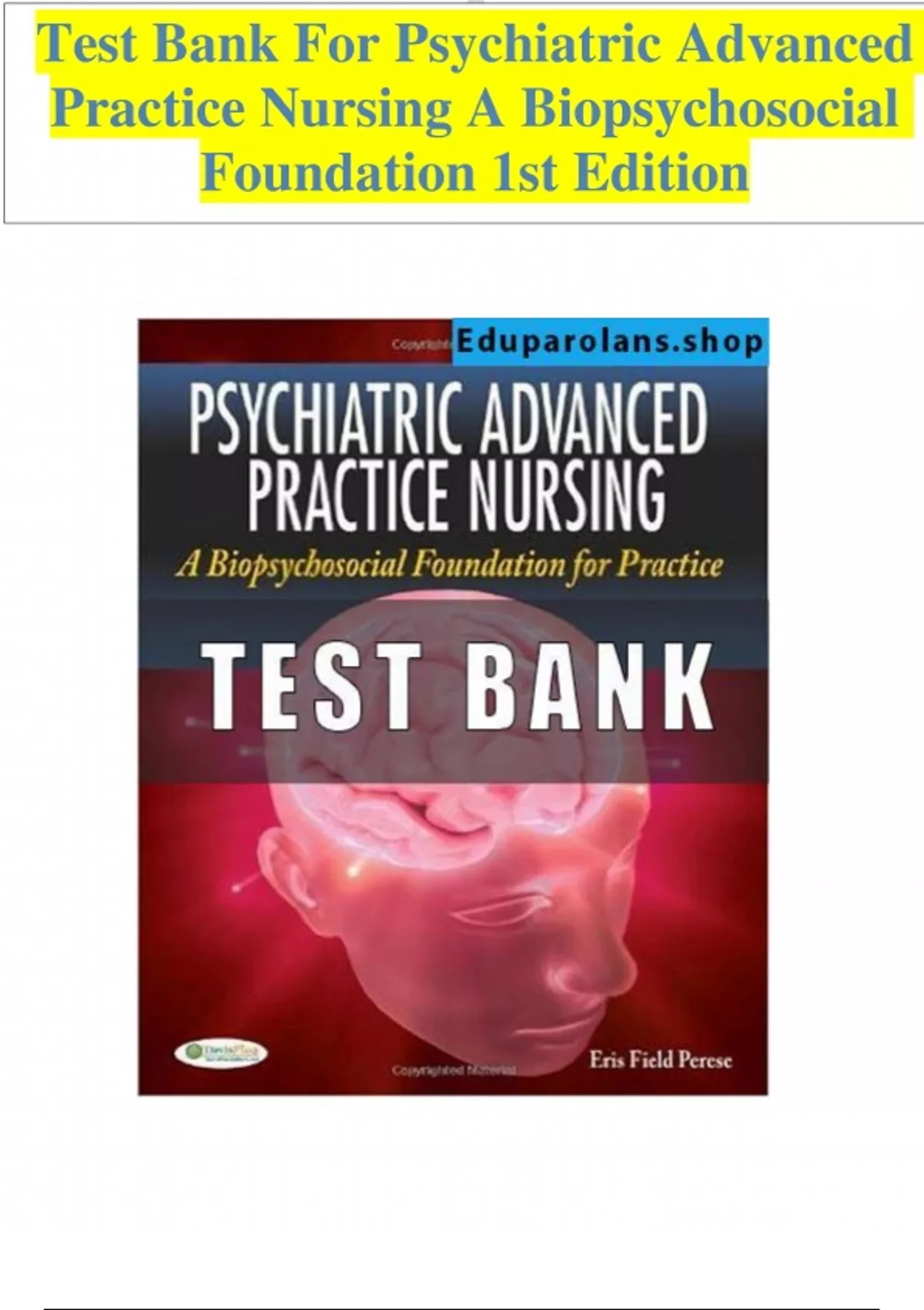 Access the complete Test Bank for Psychiatric Advanced Practice Nursing: A Biopsychosocial Foundation, 1st Edition. This advanced-level resource includes exam-style questions focused on psychiatric assessment, diagnosis, psychopharmacology, psychotherapy, and integrated care from a biopsychosocial perspective—perfect for PMHNP, DNP, and graduate psychiatric nursing students.