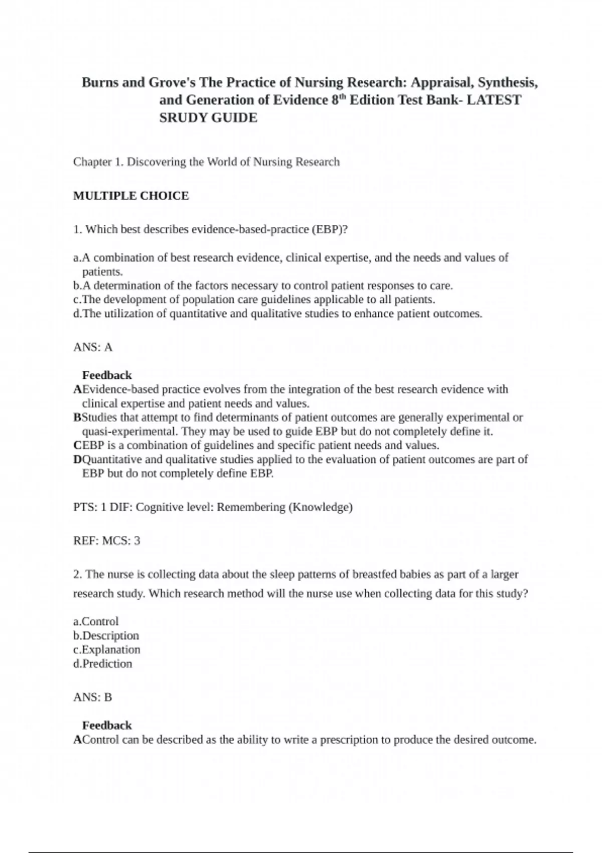 Download the complete Test Bank for The Practice of Nursing Research, 9th Edition by Burns and Grove. This essential resource features comprehensive questions with rationales on research design, data analysis, evidence-based practice, qualitative and quantitative methods, and ethical considerations—perfect for nursing students and researchers preparing for exams and scholarly work.