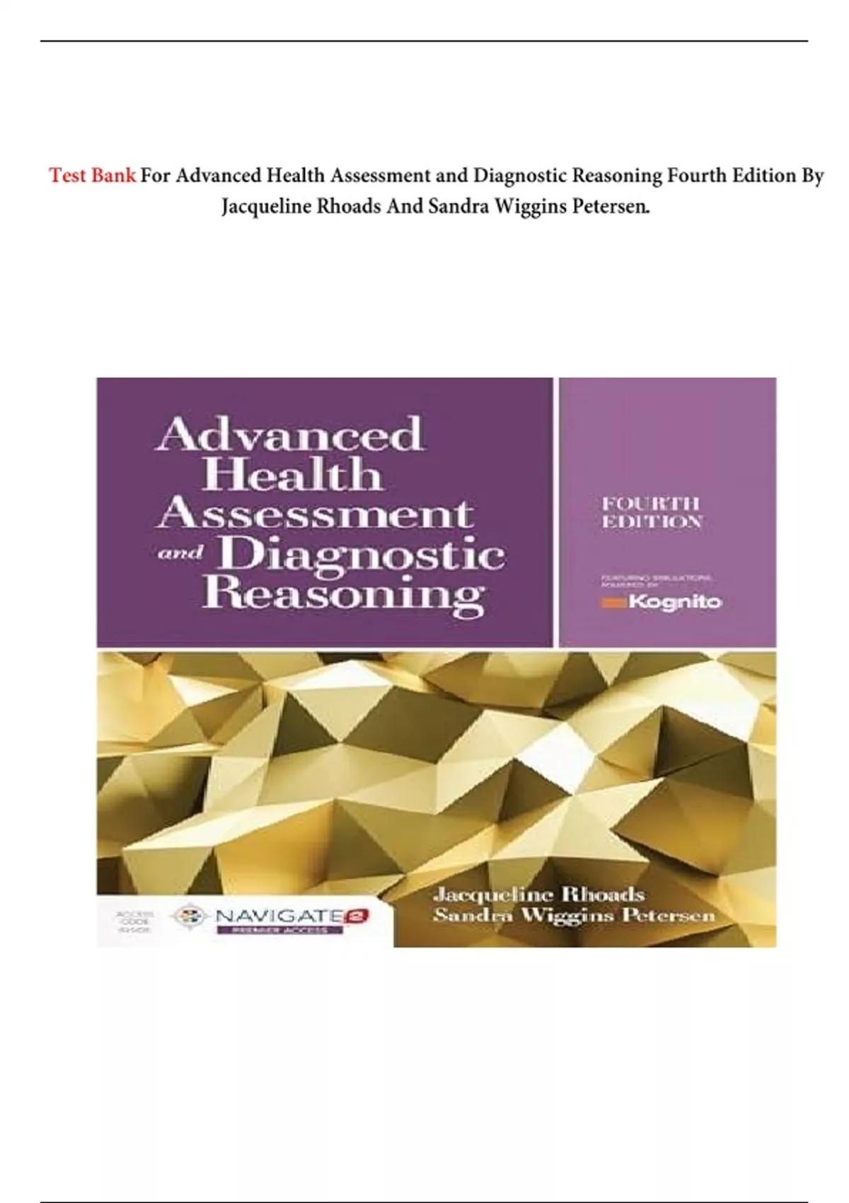 Test Bank For Advanced Health Assessment and Diagnostic Reasoning Fourth Edition By Jacqueline Rhoads And Sandra Wiggins Petersen.