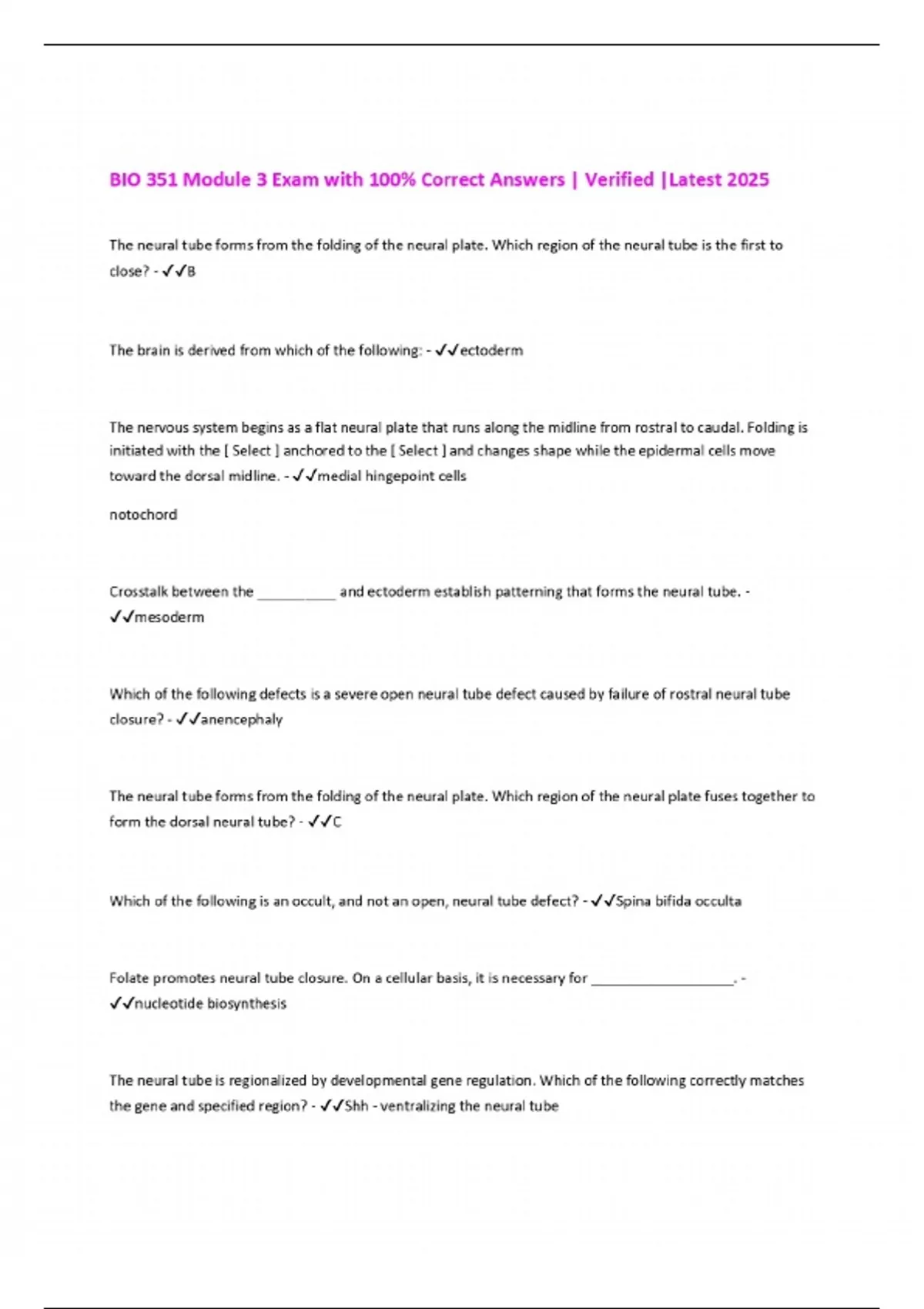 BIO 351 Module 3 Exam with 100% Correct Answers | Verified |Latest 2025