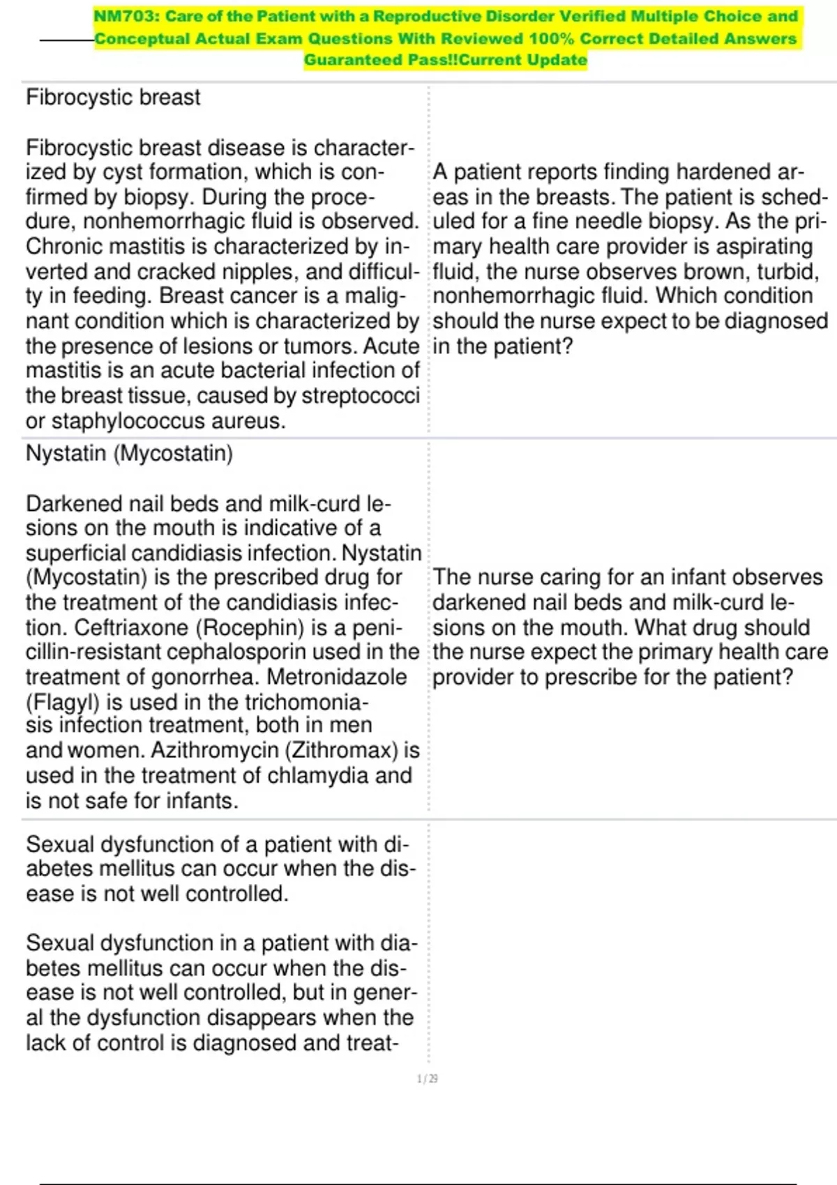 , NM703: Care of the Patient with a Reproductive Disorder Verified Multiple Choice and