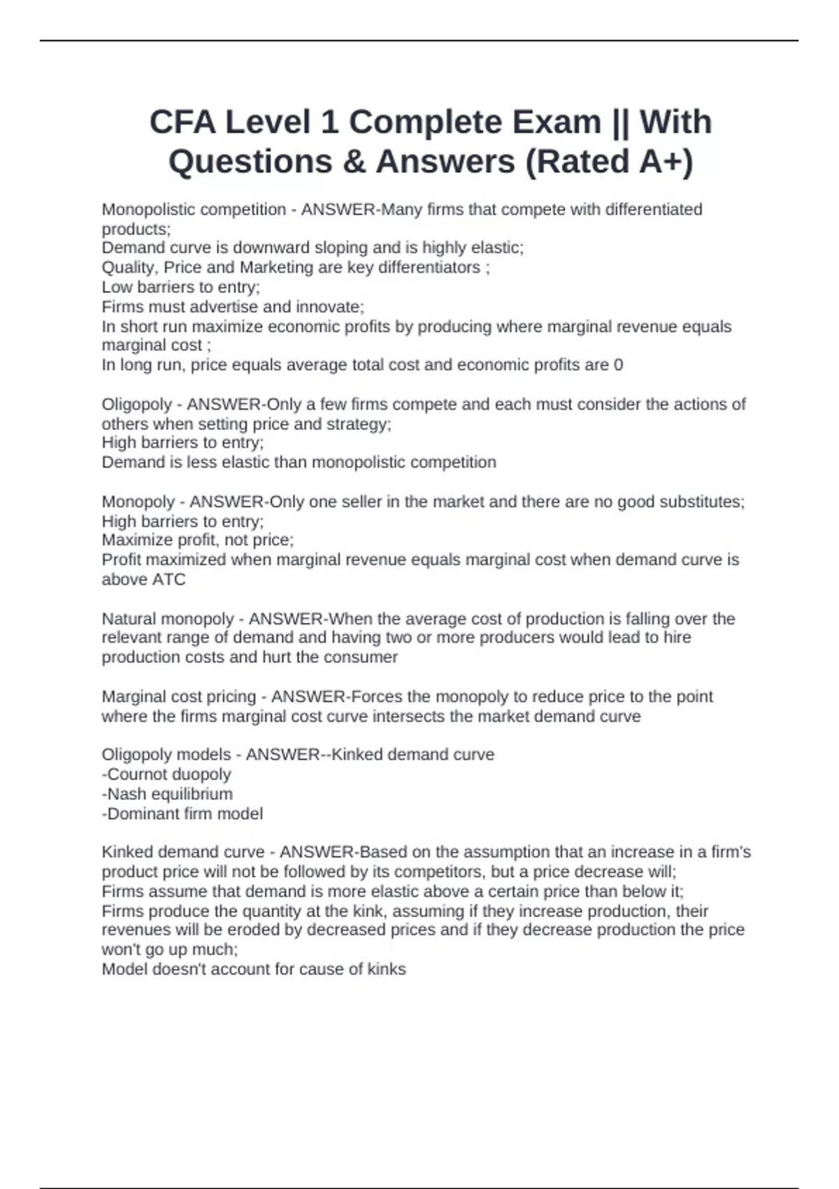 Kinked demand curve - ANSWER-Based on the assumption that an increase in a firm's